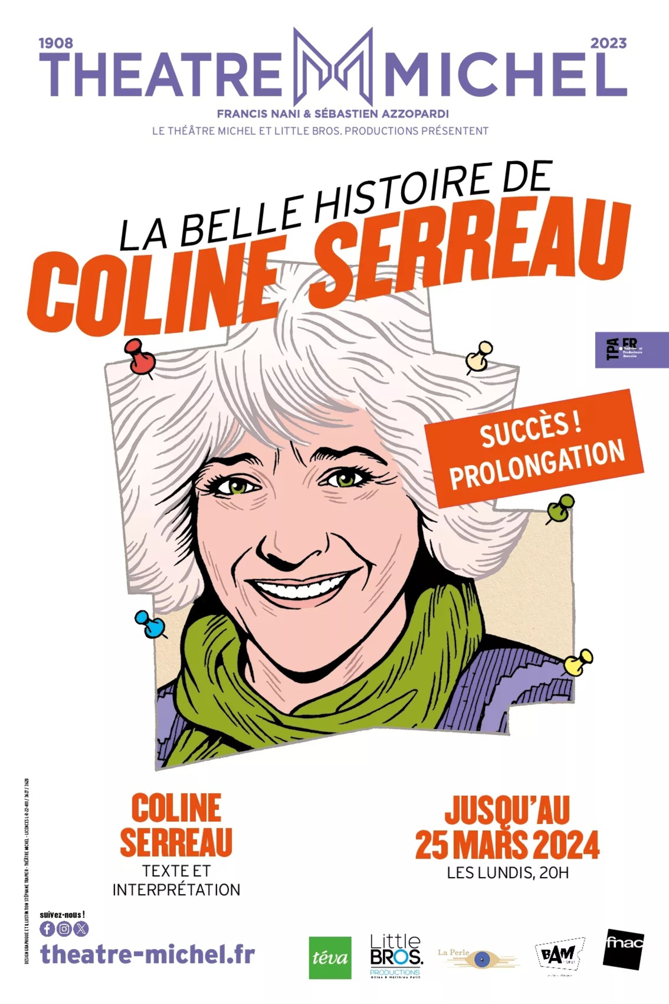 La Belle histoire de Coline Serreau, au Théâtre Michel 38 rue des Mathurins à Paris 8e, les lundis soirs (programmation prolongée).