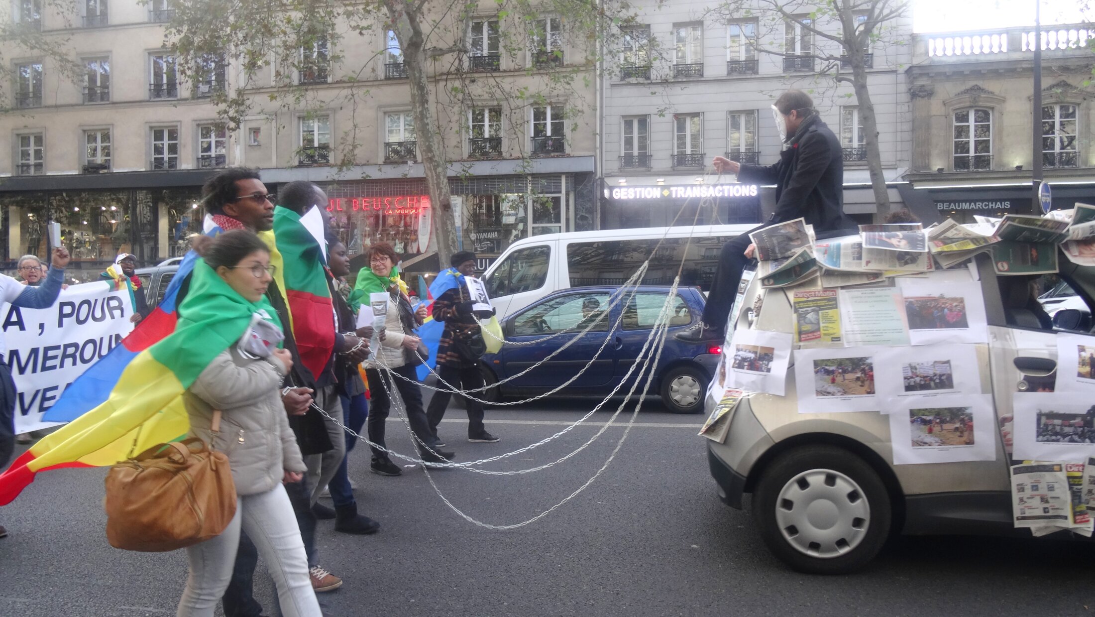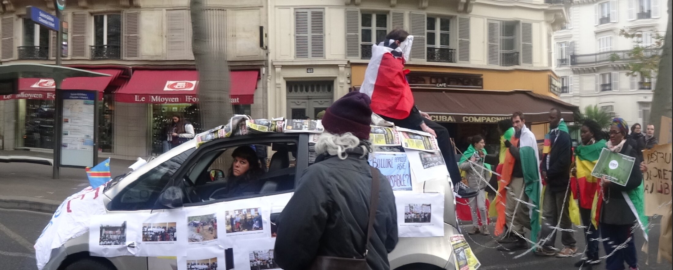 Elle fut peut-être en deçà de nos attentes en terme de participants, mais la diversité des personnes présentes et la symbolique (M. Vincent Bolloré tirant ses esclaves assis sur un autolib dans les rues de Paris ) était un message suffisamment symbolique, notamment auprès d’un public parisien peu habitué à ce type de mobilisations contre un homme présenté généralement comme un grand opérateur économique (jamais l’esclavagiste des temps modernes tel que peuvent le percevoir de nombreux Africains et non Africains).