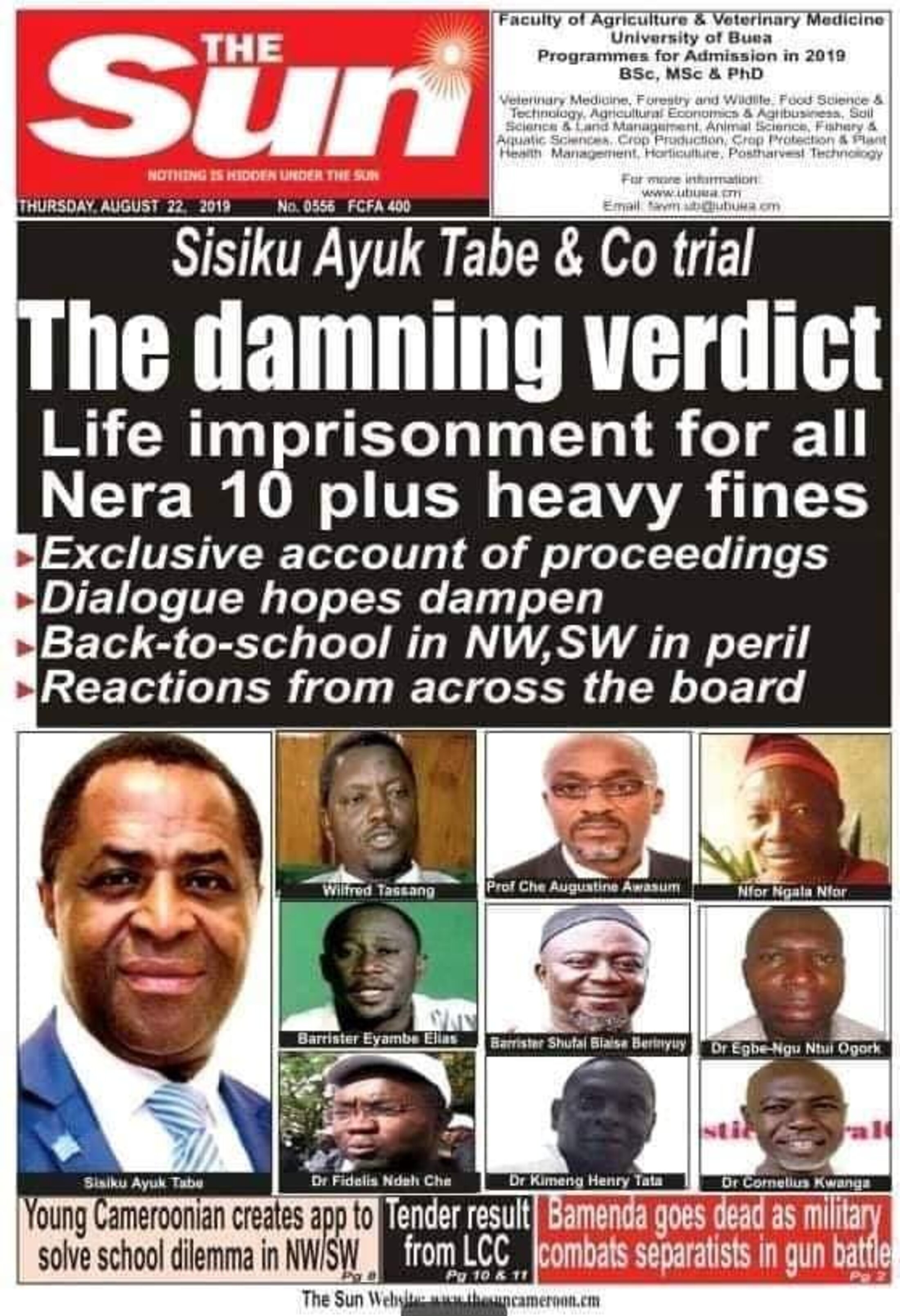 1- Le leader séparatiste anglophone SISIKU JULIUS AYUK TABE, ainsi que ses neuf (09) co-détenus condamnés pour «terrorisme» et de «sécession» par le tribunal militaire de Yaoundé