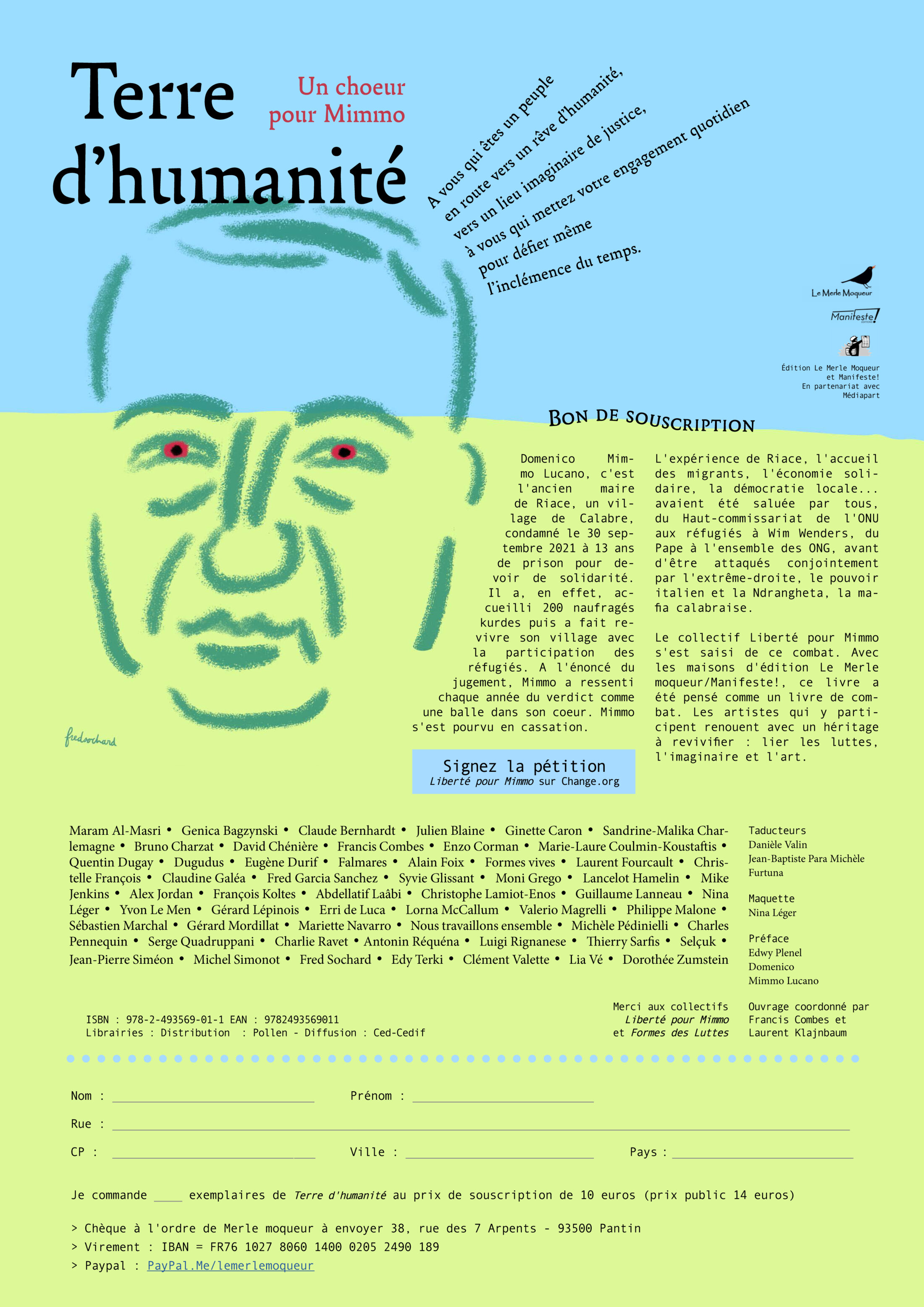 Dans quelques semaines, avec la parution de Terre d'humanité/un chœur pour Mimmo, nous aurons un outil supplémentaire pour relancer, en ce début d'année 2022, notre bataille et mobiliser l'opinion publique autour de Mimmo Lucano.