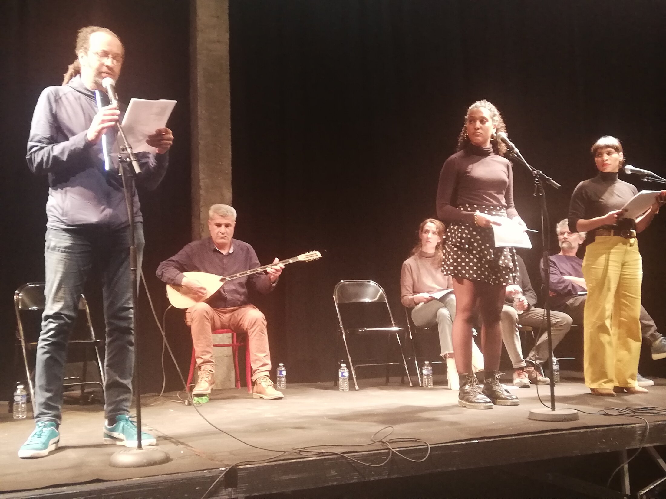 Après les interventions de Falmares, Philippe Malone et Marie-José Mondzain, une improvisation entre Karim Ghizellaoui Dit Dgiz et Nuri Ibrahim, musicien kurde, a cloturé cette soirée riche en émotions et réflexions autour des thèmes de l'hospitalité , du partage et de la solidarité. Ce bel événement, auquel ont participé près de 250 personnes, s’est achevé par des moments de partage avec les artistes, metteurs en scène, auteurs présents.