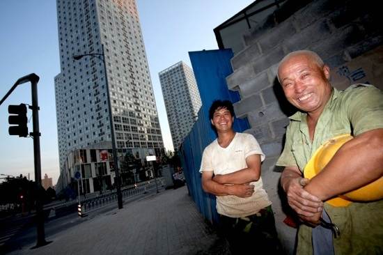 A Jianwai Soho, où je partage un bureau, on construit encore tous azymuts, pour le plus grand plaisir des spéculateurs... et des ouvriers migrants. Au coucher du soleil, quand le mercure repasse sous la barre des 40°c, j'en profite pour tirer le portrait de ces derniers, à la bonne humeur désarmante. Voici le début d'une longue série intitulée "Mingong summer". Vos commentaires, critiques et suggestions sont évidemment les bienvenues.