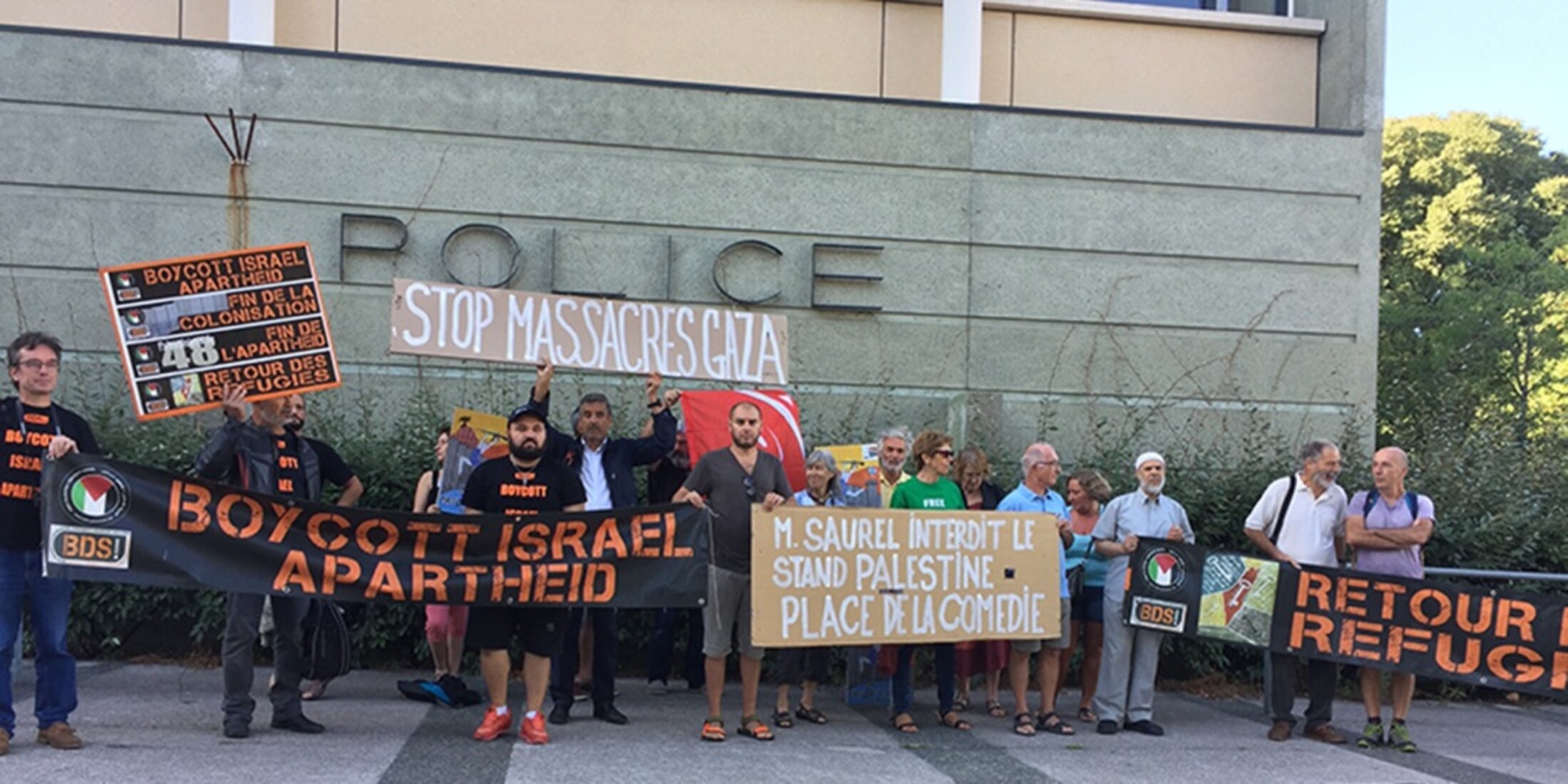 Le 19 mai 2018 la Campagne BDS France Montpellier appelait à une manifestation (déclarée en préfecture) contre les assassinats de civils palestiniens par les snipers israéliens dans la Bande de Gaza et plantait son chapiteau place de la Comédie. Deux fonctionnaires de la police municipale sont rapidement passés à vélo pour dire à José-Luis Moragues qu'ils le verbalisaient pour "occupation illégale de l'espace public" et son vite partis sous les huées des manifestant.e.s rassemblés.