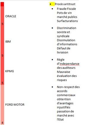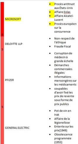 Liste des corporations les plus signifiantes et les procès qu’ils ont perdus (en construction)