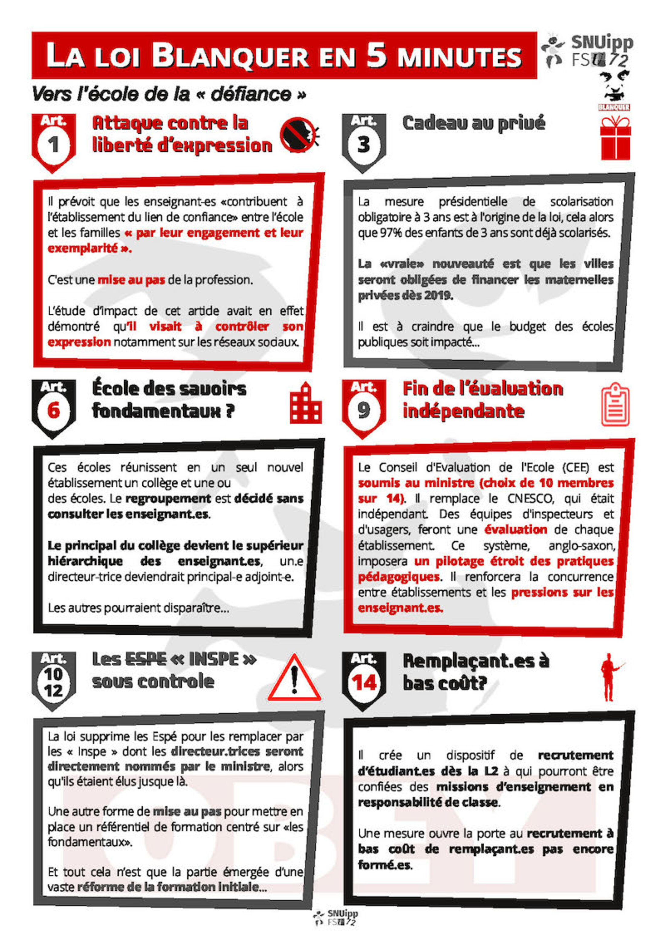 Comme ses alliés, Jean-Michel Blanquer est un adversaire résolu l’École Publique française et de ses valeurs. Son parcours est d'ailleurs jalonné des attaques qu’il a déjà portées à l’encontre de l’institution. Ministre, il achève une démolition de l’École Publique dont il n'est pas le seul responsable... Tout en discourant sur la lutte contre les inégalités, sur la confiance et la bienveillance, hypnotisant sa victime, tel Kaa dans le livre de la jungle.