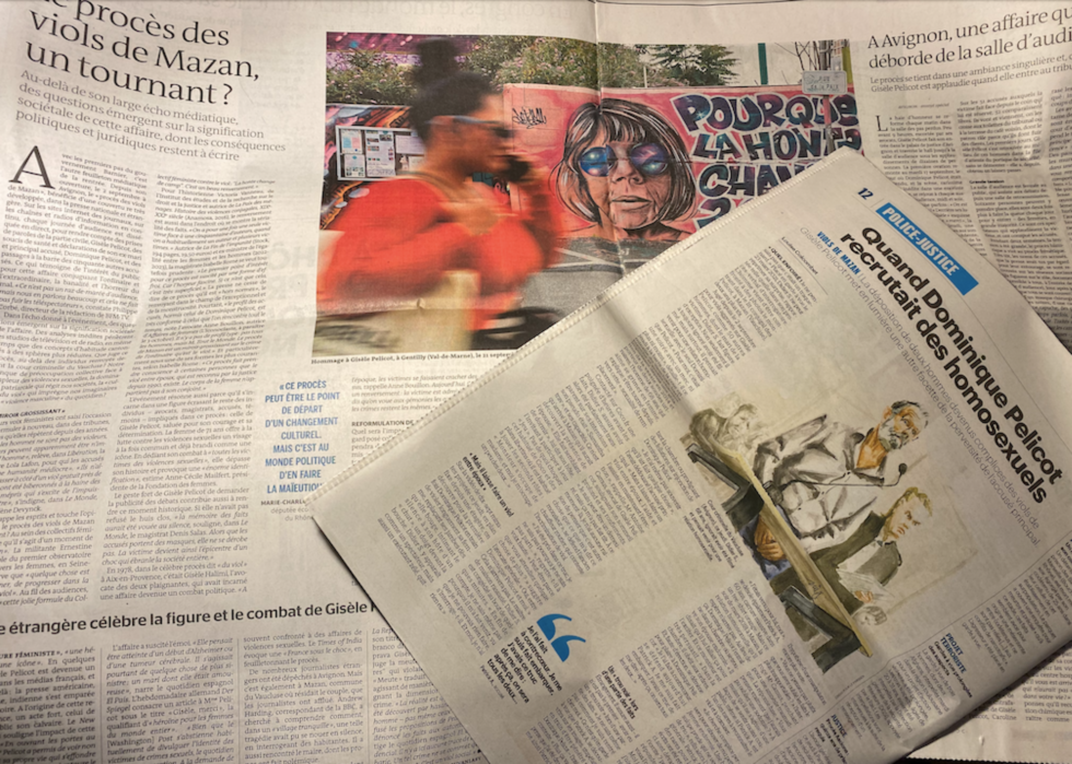 La photojournaliste Anna Margueritat, qui couvre le procès Mazan, décrit dans un article paru dans Politis une ambiance sexiste durant les premiers jours d'audience : des accusés qui se serrent les coudes entre eux, sociabilisent au café du coin. Leur supériorité numérique crée une tension dans le tribunal. Certains insultent des journalistes, fixent les femmes dans l’assemblée. Alors que Gisèle Pélicot avait décidé de lever le huis clos pour que la honte change de camp, les premiers jours du procès ont été le nouveau théâtre de la domination masculine en action.