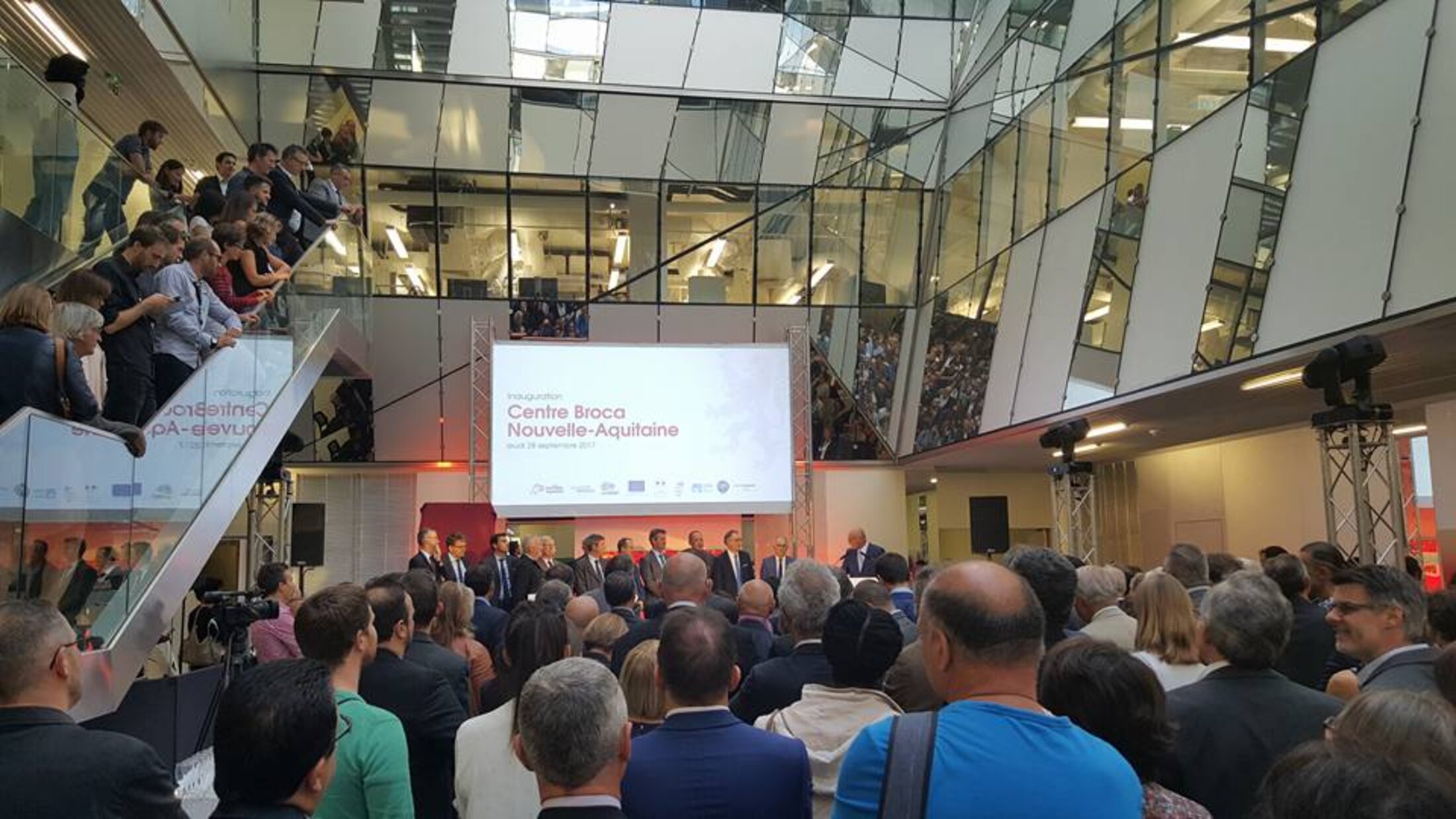 1- LE CENTRE BROCA en chiffres c’est 4 ans de travaux, 47 M€ pour la construction, 20 M€ pour les nouveaux équipements, 240 scientifiques, 2 instituts : l’Institut interdisciplinaire de neurosciences (IINS) et l’Institut des maladies neurodégénératives (IMN), 29 microscopes à ultra-haute résolution du Bordeaux Imaging Center (BIC), et 4 tutelles scientifiques : université de Bordeaux, CNRS, Inserm, Inra