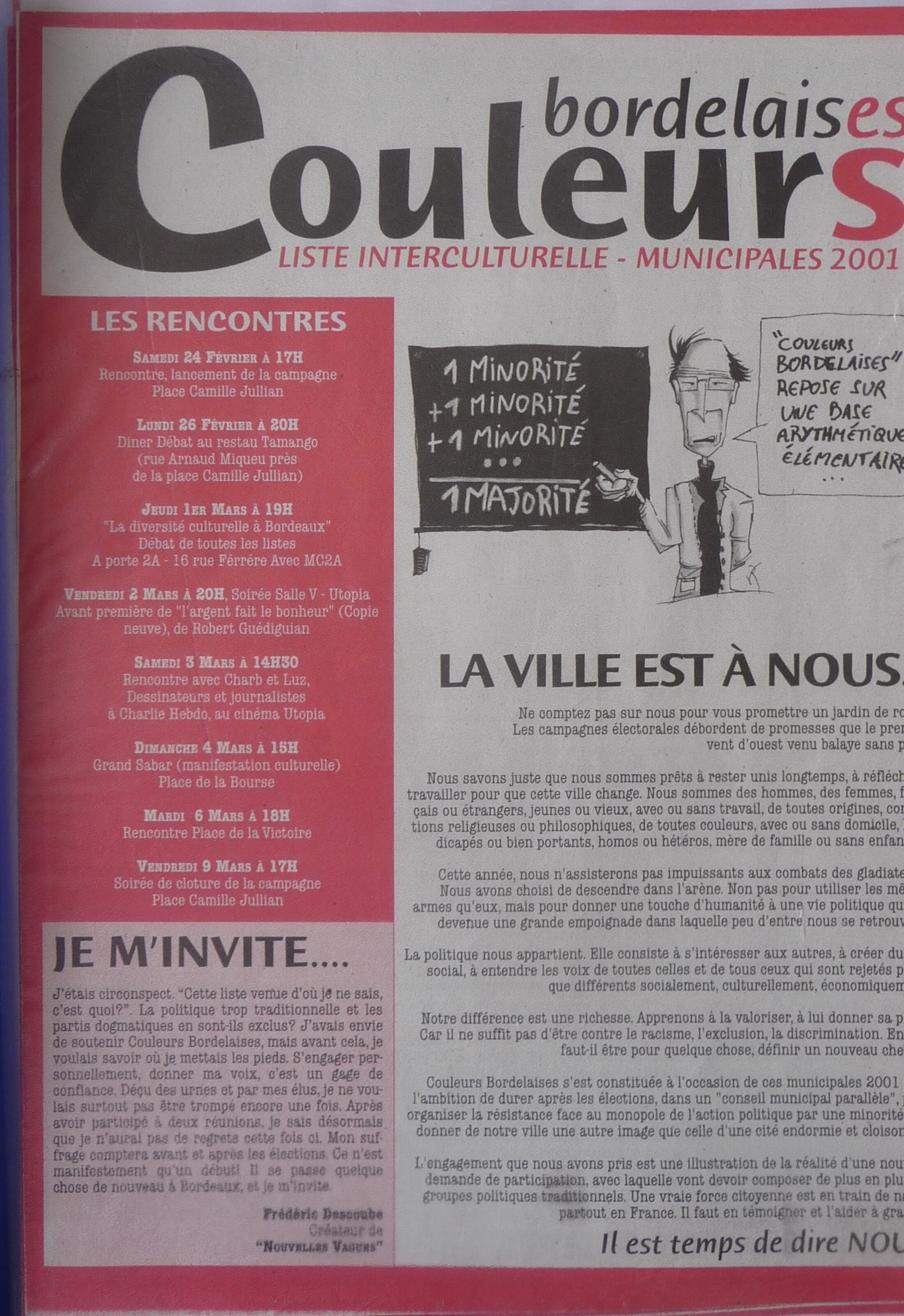 Journal de Campagne de la liste "Couleurs Bordelaises", Elections municipales 2001