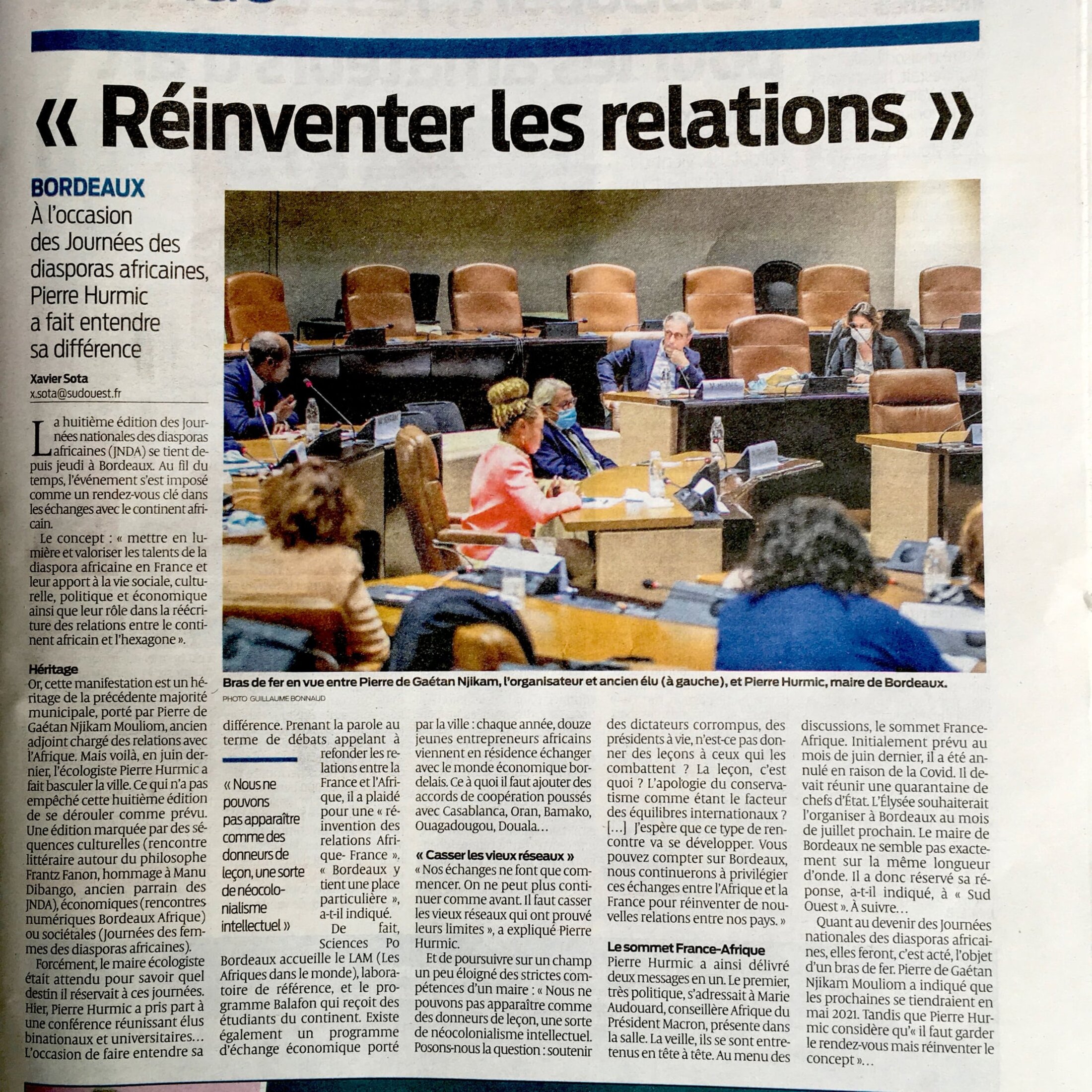 La ville de Bordeaux a donc reconduit le week-end dernier, les Journées Nationales des Diasporas Africaines, support de légitimation associative créée par la droite bordelaise, payant rubis sur ongles billets d’avion et suites présidentielles à des invités triés sur le volet car totalement acquis à la rhétorique néo-colonialiste en vogue dans les milieux élyséens : « mettre en lumière et valoriser les talents de la diaspora africaine en France et leur apport à la vie sociale, culturelle, politique et économique, ainsi que le rôle dans la récriture des relations entre l’Afrique et l’haxagone »
