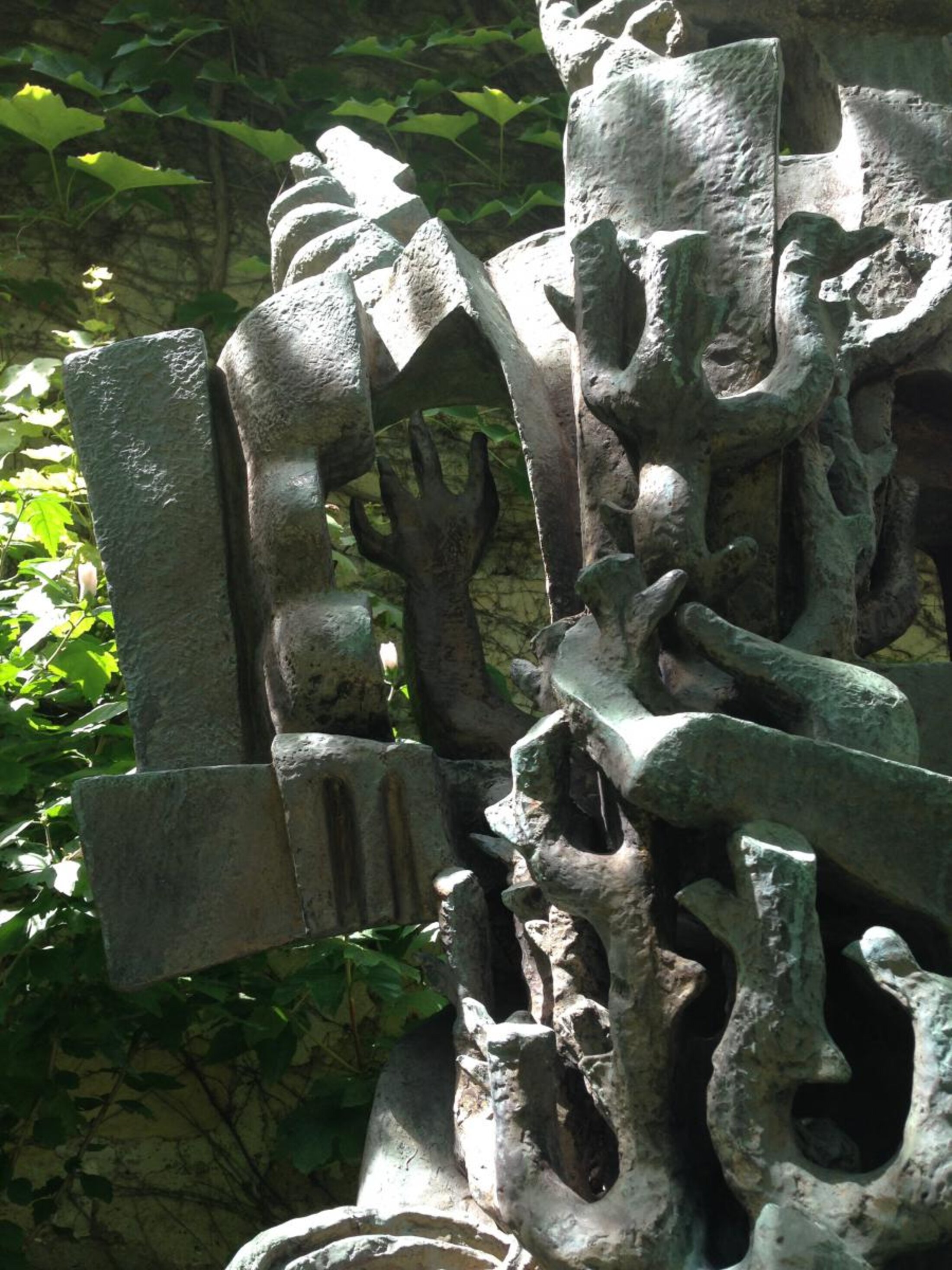 J'ai visité le Musée Zadkine, il y a quelques mois ( en 2022 ) ; il est une merveilleuse Folie dans Paris, un jardin plein d'herbes folles, des sculptures de toute beauté, pleines ou trouées, dans l'intérieur de la maison-musée et dehors ; j'ai pris des photographies ( ce ne sont pas, – sauf la dernière : « Musée Zadkine » –, celle de mon billet car voulant les poster, elles se retournaient, jamais droites, comme des cartes in-sensées ...) Zadkine et sa Forêt Humaine m'ont été révélés d'abord par Gisela Pankow dont un des essais était illustré d'une majeure de ses sculptures :