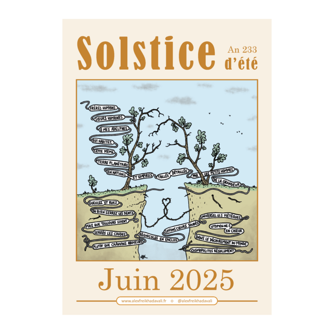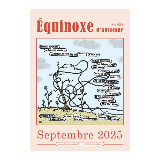 Alex Frei Khadavali (AFK), poète, dessinateur et calligraphe, scrutateur d'un monde dont les heureux possibles trop souvent ploient sous les piques du pire, mais où l'on s'entête malgré tout, collectivement, à chercher une voie vers un peu mieux.