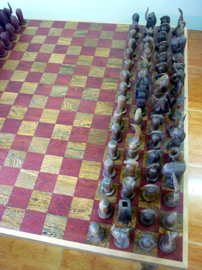 - Pour une meilleure ergonomie du jeu, nous conseillons aux joueurs de jouer, soit debout, soit assis à une hauteur d'au moins de 40 cm de l'échiquier, car c'est le seul manière d'observer et d'analyser globalement et particulièrement le jeu et la stratégie de l'adversaire, compte tenu de l'étendue du plateau.