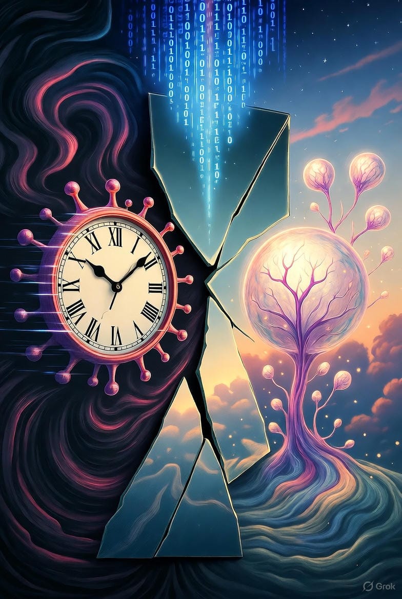 Analogie IA : Comme un LLM sans "ancrage" (données réelles) – hallucine valeurs infinies (crypto), détruisant le sens (vivant). Aujourd'hui : IA optimise ce chaos (prédiction boursière), hallucinations comme cri du réel – un appel à l'antidote, fluide et émergent.