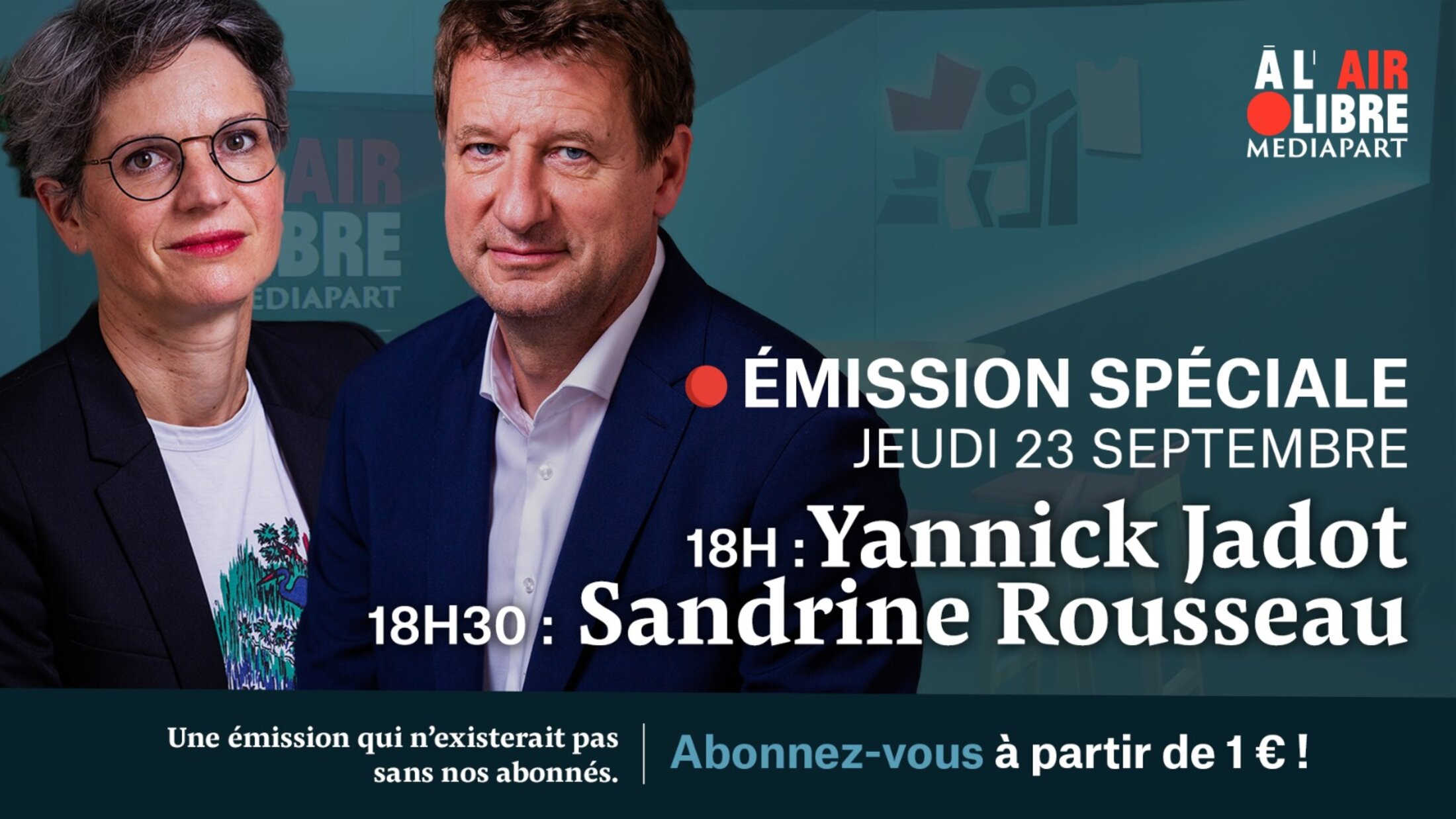 Avant le deuxième tour de la primaire écologiste, Yannick Jadot puis Sandrine Rousseau, les finalistes de la primaire écologiste, seront en direct ce jeudi 23 septembre dans « A l’air libre », l’émission quotidienne de Mediapart, pour deux grands entretiens.