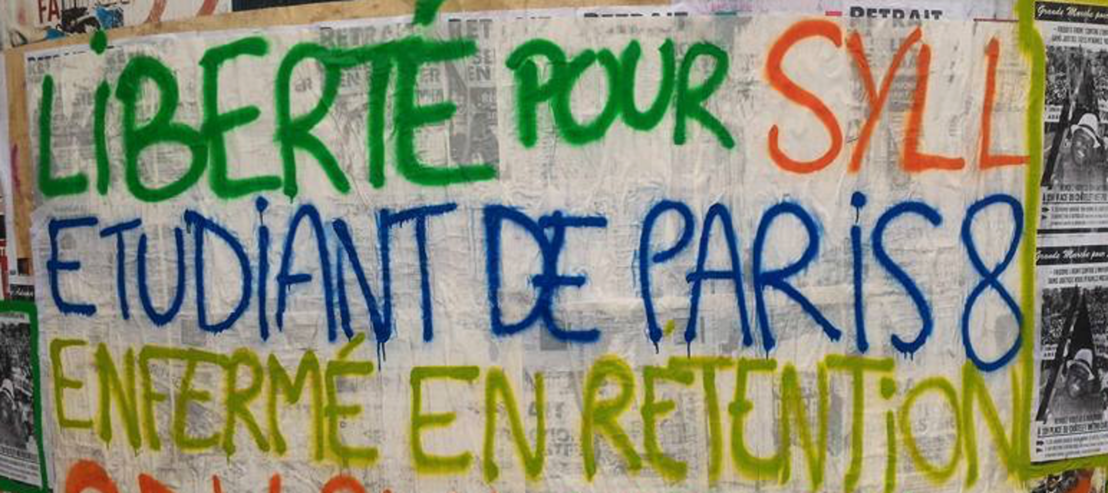 Syll, étudiant en deuxième année de philosophie à l’Université de Paris 8 Vincennes-Saint-Denis est détenu au centre de rétention administrative (CRA) de Vincennes depuis le 4 novembre. Il est menacé d’expulsion. Syll n’a pu entrer en contact avec ses camarades qu’au bout de dix jours. Nous ne pouvons tolérer qu’un-e- étudiant-e- inscrit-e- dans une université française soit enfermé-e depuis plus de trois semaines. Sa place est auprès de ses camarades, dans une salle de cours et non dans un centre de rétention.