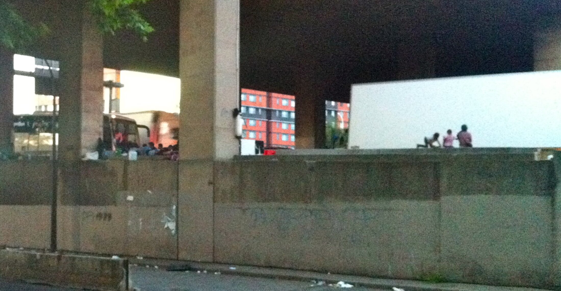 Ce soir, quasiment pas de présence policière au moment de la rupture du jeûne... Peut-être trop occupés par la sécurisation du stade de France... Les bénévoles ont pu distribuer repas et eau... Sinon, que dire... Des dizaines de personnes qui vivent à même le sol, sans tente, entre le Bd extérieur, le périphérique et l'entrée de l'autoroute... partout des obstacles ont été posés, les fameux rochers entre lesquels les réfugiés se glissent pour dormir, des blocs de béton entassés... J'ai compté trois urinoirs, trois toilettes sèches et un bloc de trois robinets, comme ceux du bidonville de Calais... J'ai d'abord passé deux heures au milieu de la place, en fin d'après-midi, quand le soleil tapait dur et que la circulation était particulièrement dense... C'était à la fois irrespirable et insupportable au niveau du bruit... Les mêmes conditions indignes dans lesquelles se trouvaient les familles syriennes, porte de Saint-Ouen, l'année dernière, les tentes en moins... L'abjection est un gouffre sans fin. Ils sont quelques centaines... Des hommes, jeunes surtout, mais aussi des familles, qu'on force à vivre comme des rats, dans l'espoir qu'ils finiront par ne plus le supporter et qu'ils disparaîtront... Le "centre d'accueil", autour duquel ils sont agglutinés, est situé sur un terrain suffisamment grand pour en accueillir facilement dix fois plus, mais à la place, on les gaze, on les frappe, on les prive de nourriture, on leur interdit le moindre abri... On les torture mentalement et physiquement, en espérant qu'ils finiront par craquer et aller ailleurs, plus loin, n'importe où... Et quelques fois ça marche... Alors, pourquoi arrêter...