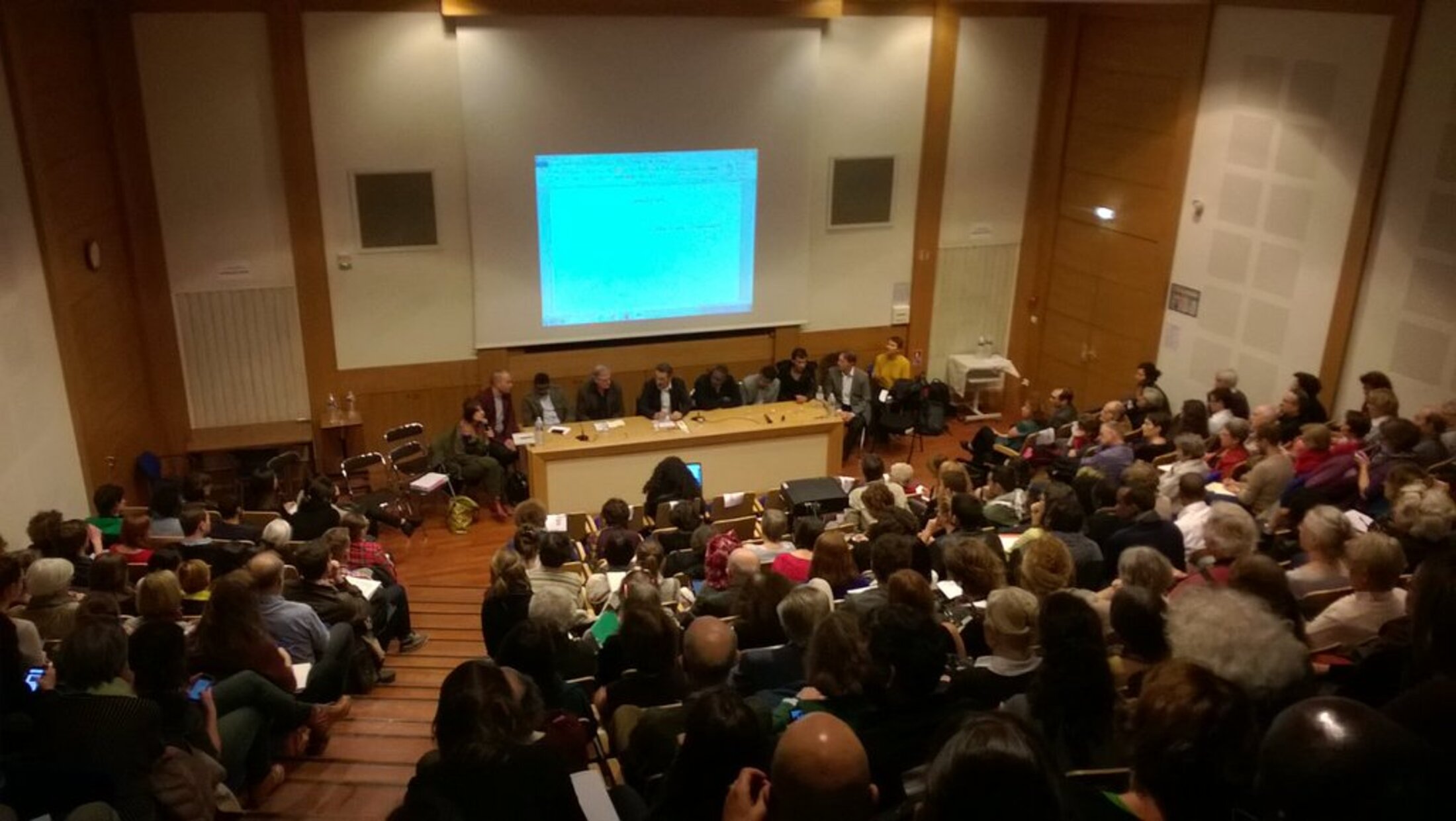 Sylvain Gourmeau passe la parole à la salle, pour une série de questions-réponses avec les intervenants, dont plusieurs réfugiés et sans-papiers, puis Claire Rodier prend la parole (voir son intervention dans un article séparé).