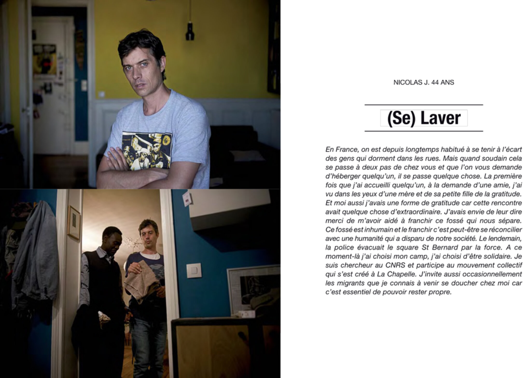 Bertrand Gaudillère, photographe et cofondateur du Collectif Item. Cette structure basée à Lyon lui permet de réaliser et de diffuser un travail qui explore essentiellement des problématiques sociales et politiques comme la question des sans-papiers en France.