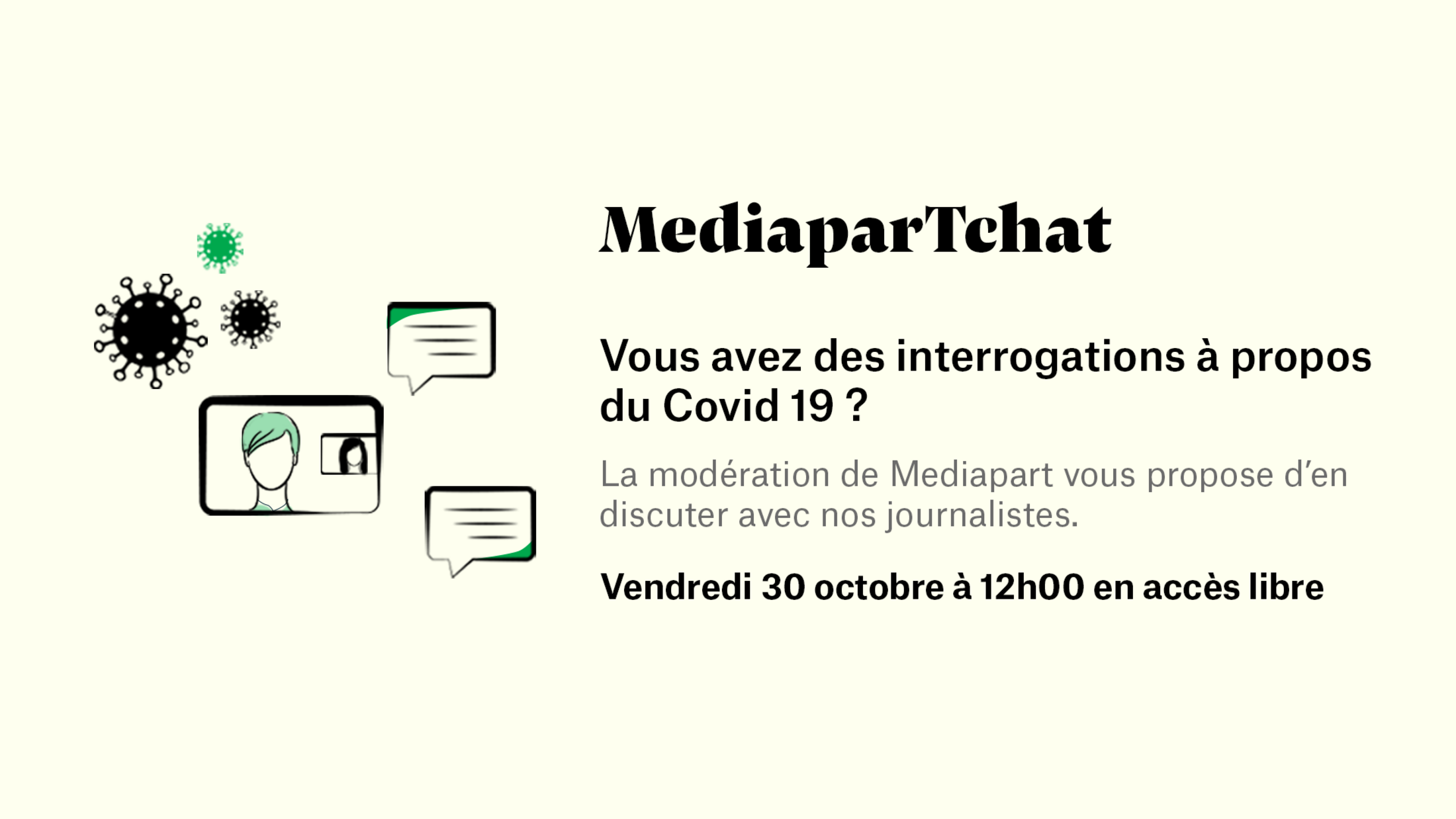 Est-ce que les masques sont efficaces ? Où en est la recherche d’un vaccin ou d’un traitement ? Combien de temps va durer l'épidémie de Covid-19 ? Vendredi 30 octobre, de 12 heures à 13 heures, la modération de Mediapart vous propose d’en discuter avec nos journalistes, Caroline Coq-Chodorge et Rozenn Le Saint (en accès libre) !