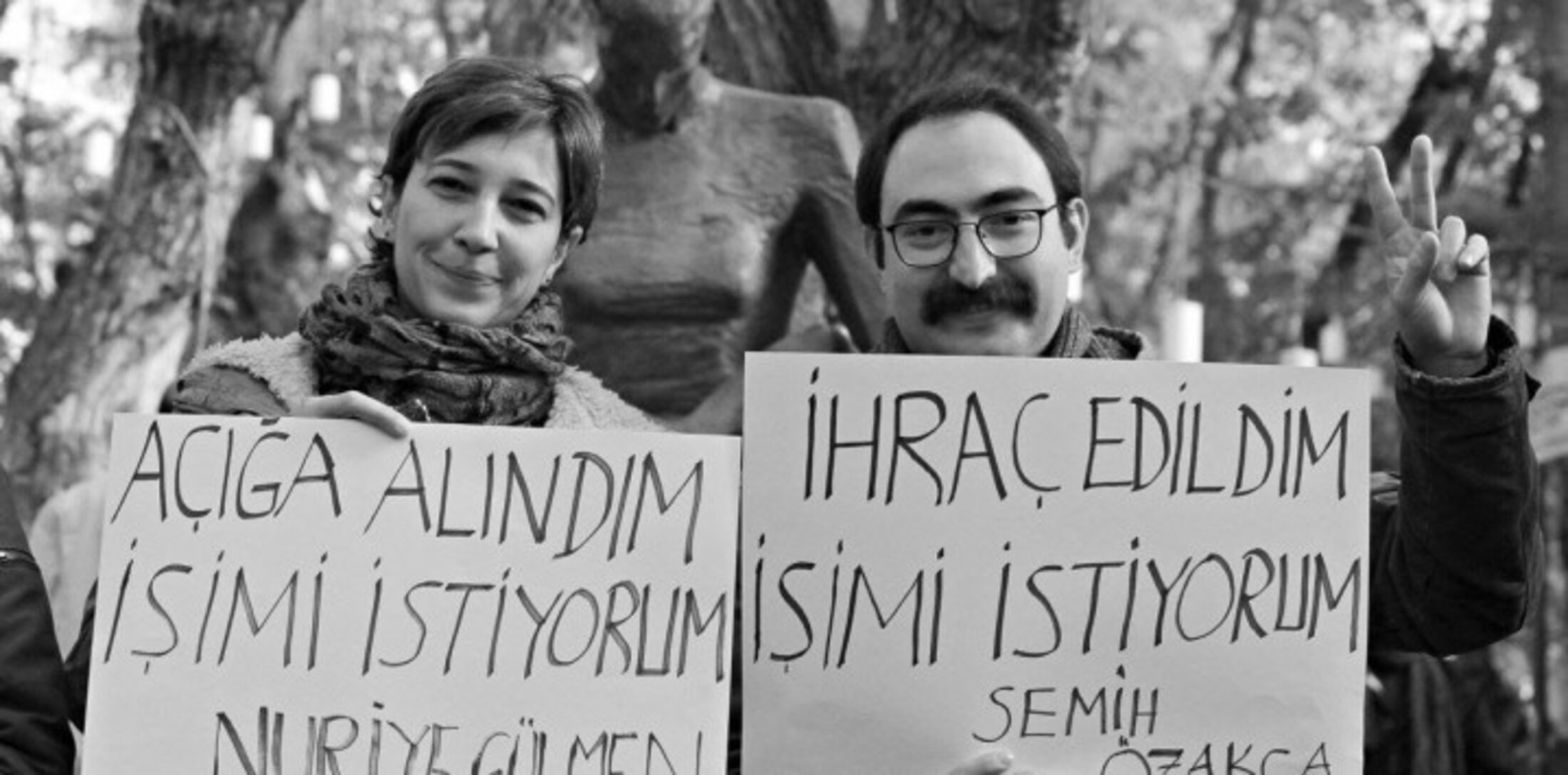 Parmi ces fonctionnaires figurent Nuriye Gülmen (universitaire) et Semih Özakça (enseignant).