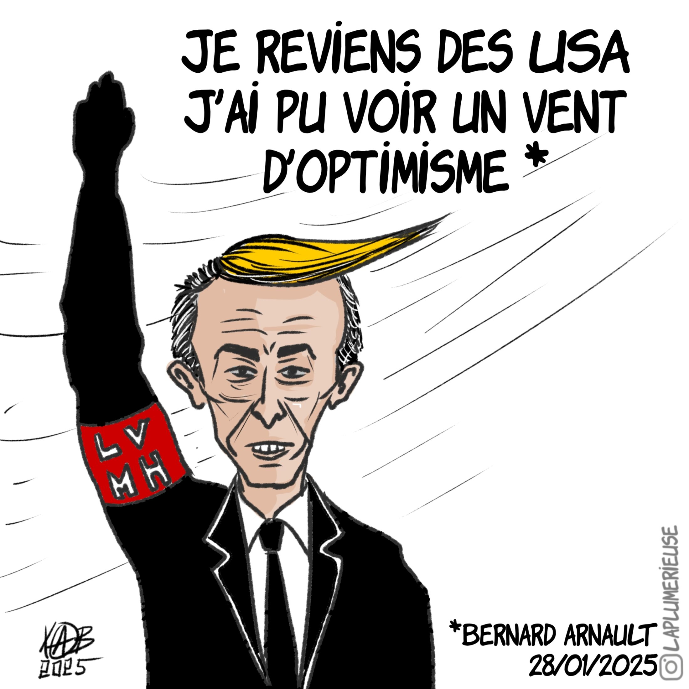 « Je reviens des USA, j'ai pu voir un vent d'optimisme » a déclaré à son retour de la cérémonie d'investiture de la présidence américaine, un Bernard Arnaud fasciné par le fascisant Trump.