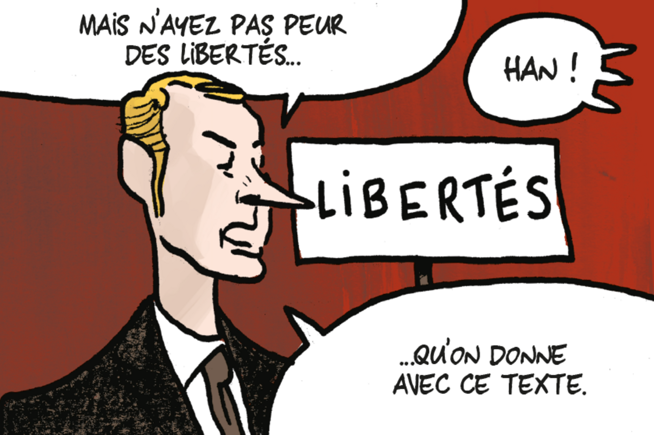 Pour mesurer la différence entre ces deux tactiques, on ne saurait que trop vous conseiller de regarder le processus législatif qui s’achève à la lumière de la bande dessinée des journalistes du Monde Hélène Bekmezian et Patrick Roger et du dessinateur Aurel.