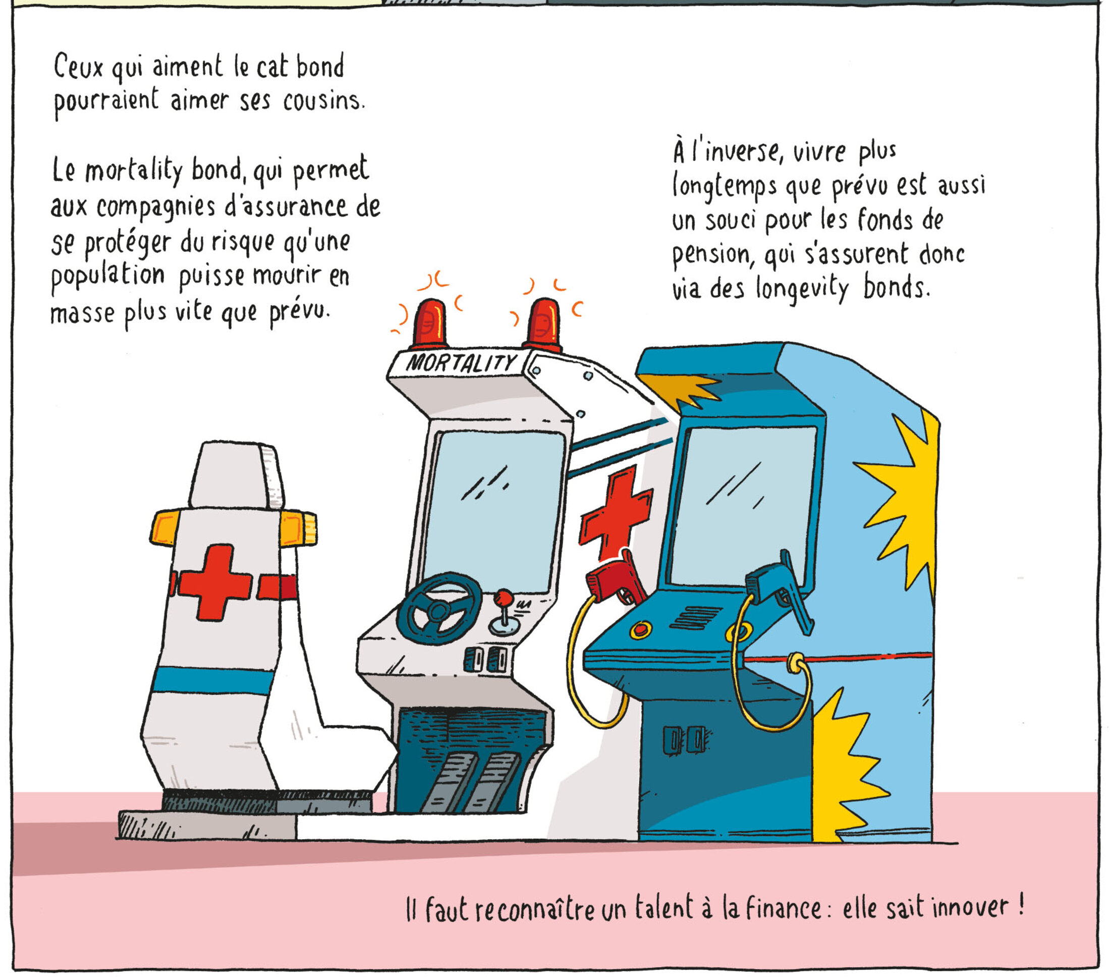 En réalité, les obligations catastrophes (les « cat bonds » en bon anglais) - au coeur d'une enquête dessinée publiée dans le numéro 12 de La Revue Dessinée - sont issues de réflexions menées, dès les années 1980, par des sociologues et des philosophes. Ulrich Beck les a théorisées comme une nouvelle modernité de notre monde, celle de la « société du risque ». Dans nos sociétés post-modernes, analyse-t-il, certains risques sont trop imprévisibles et socialement ingérables.