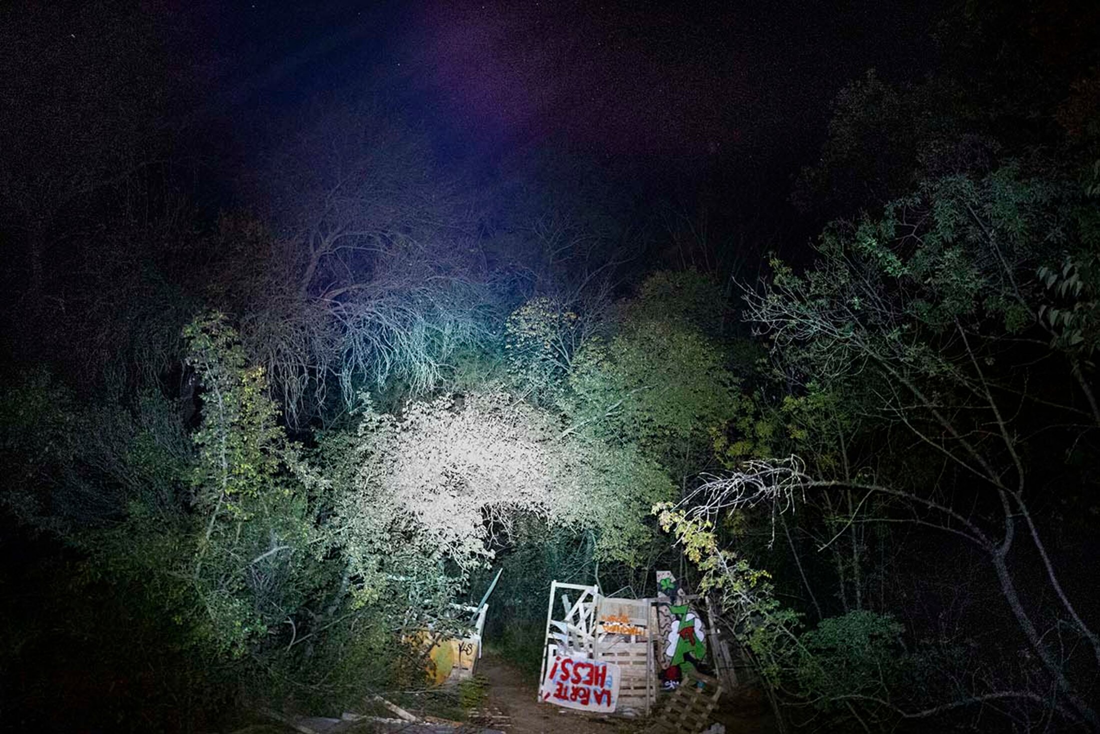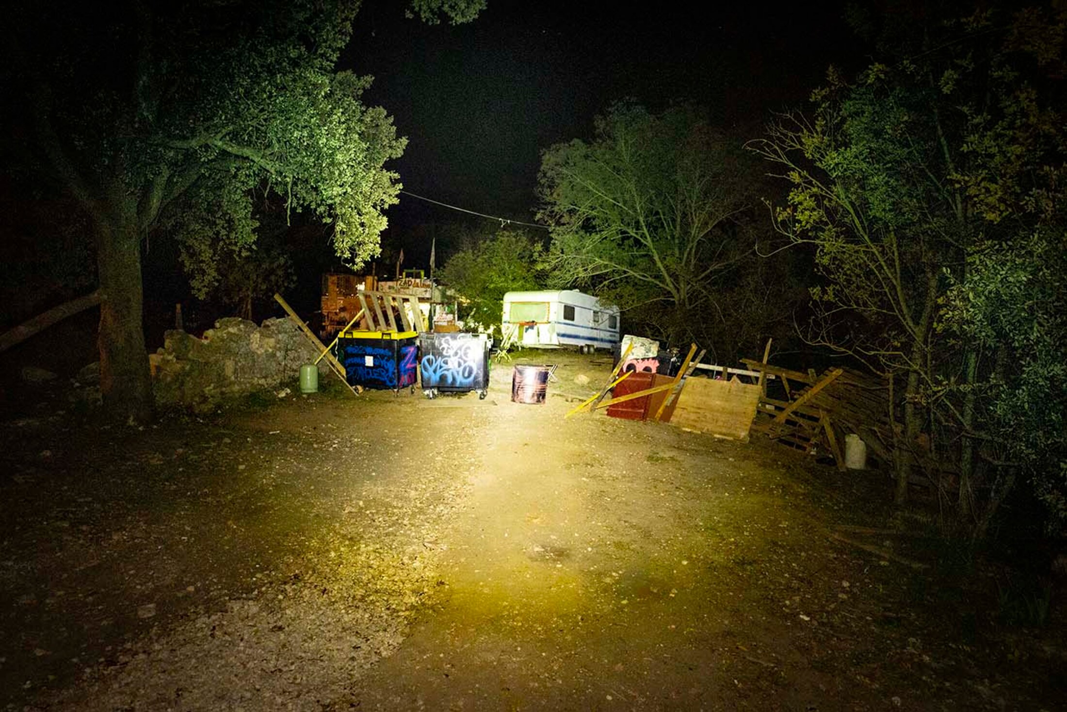 Dans l’après-midi, plusieurs d’entre iels s’étaient rendu·es sur un terrain jouxtant la zone dans le but d’y construire une cabane. Réaction immédiate de la maréchaussée, qui s’est déployée en masse autour du lotissement du Pradas, à Grabels, où se situent les barricades marquant l’entrée de la ZAD. Des contrôles d’identité ont été réalisés, lesquels ont abouti à l’interpellation de trois personnes et au placement en garde-à-vue de deux d’entre elles, sans que l’on en connaisse pour l’heure le motif. Puis, la première barricade, située sur une parcelle appartenant à la municipalité, a été détruite par les gendarmes.