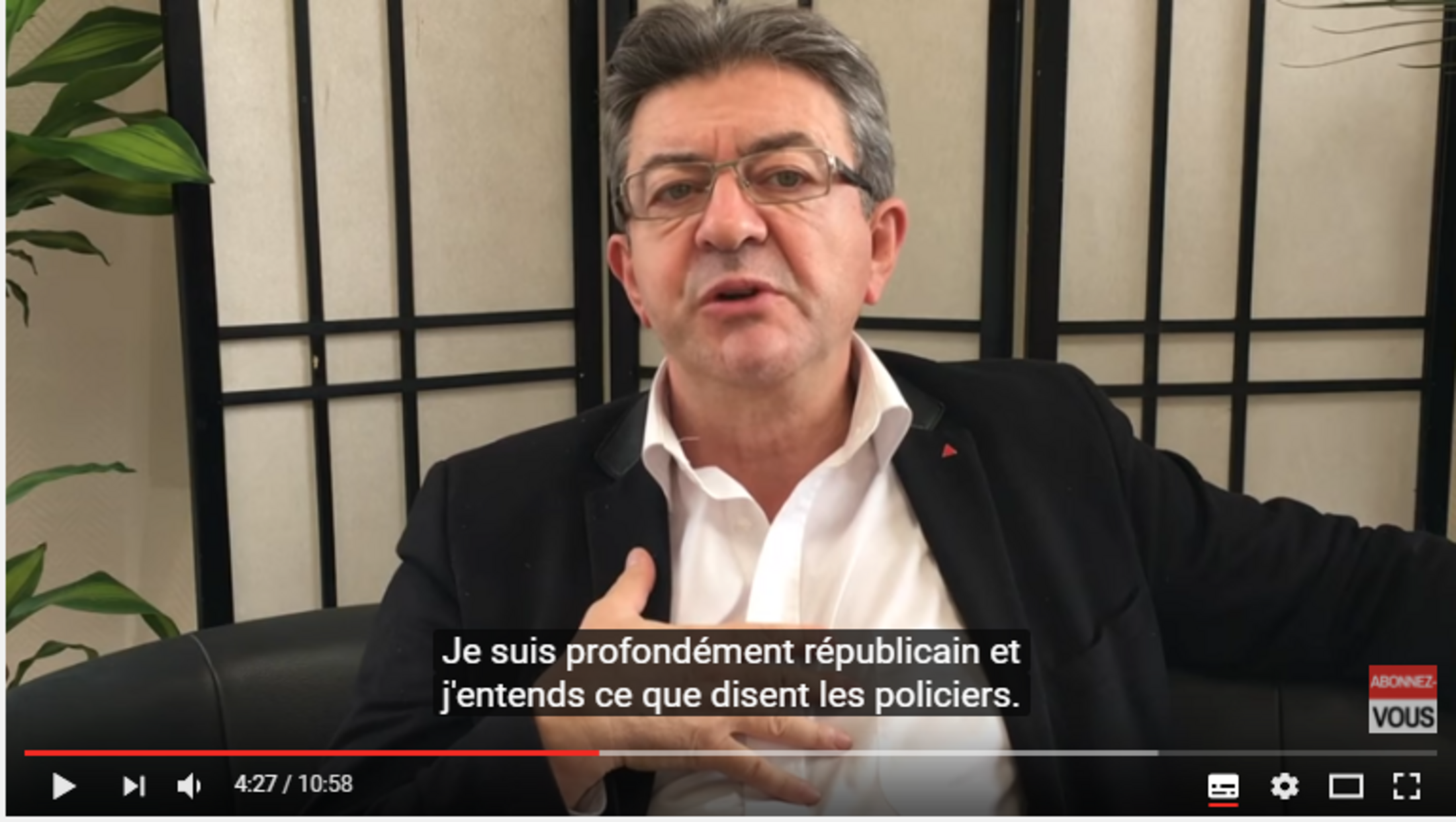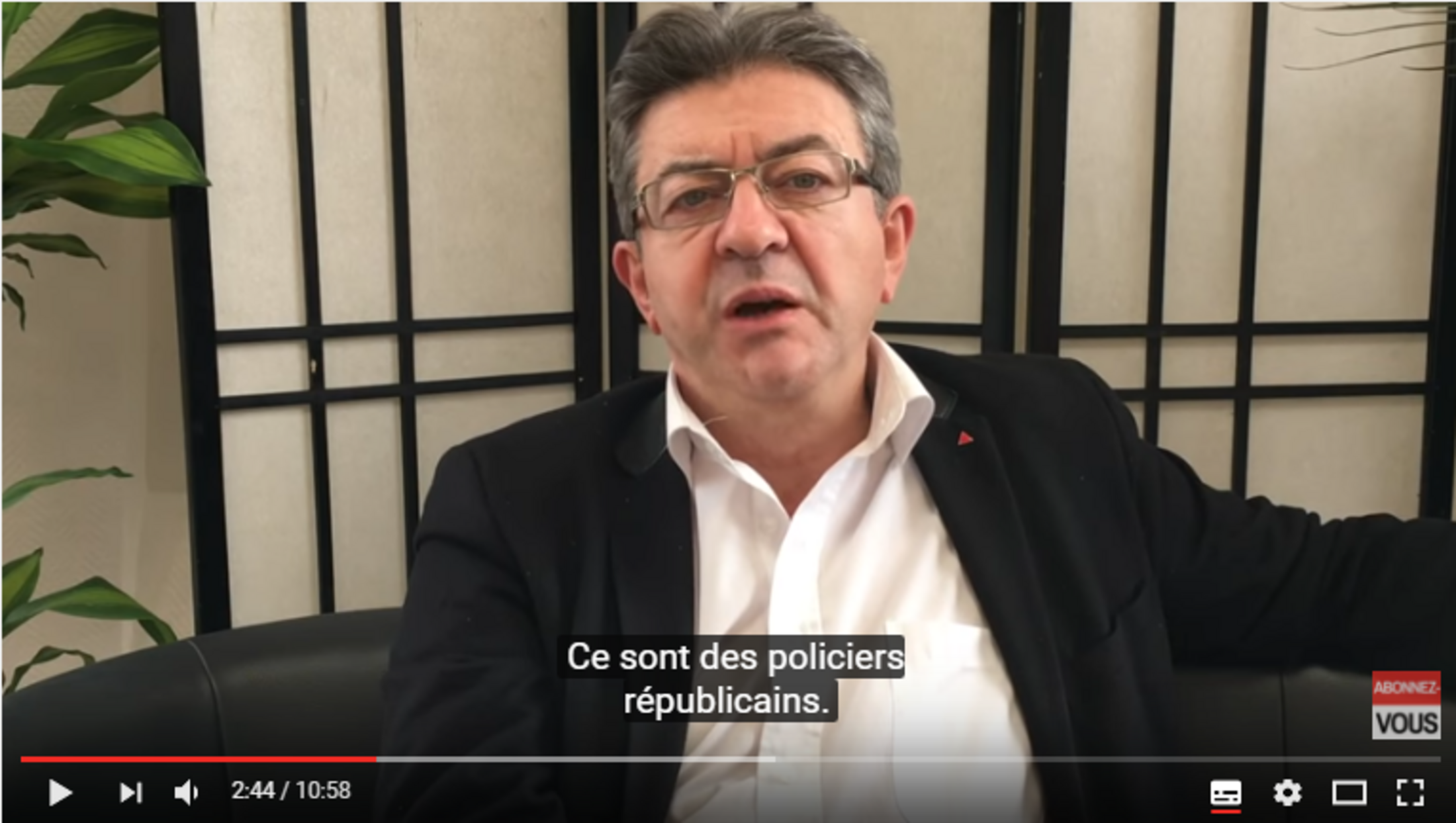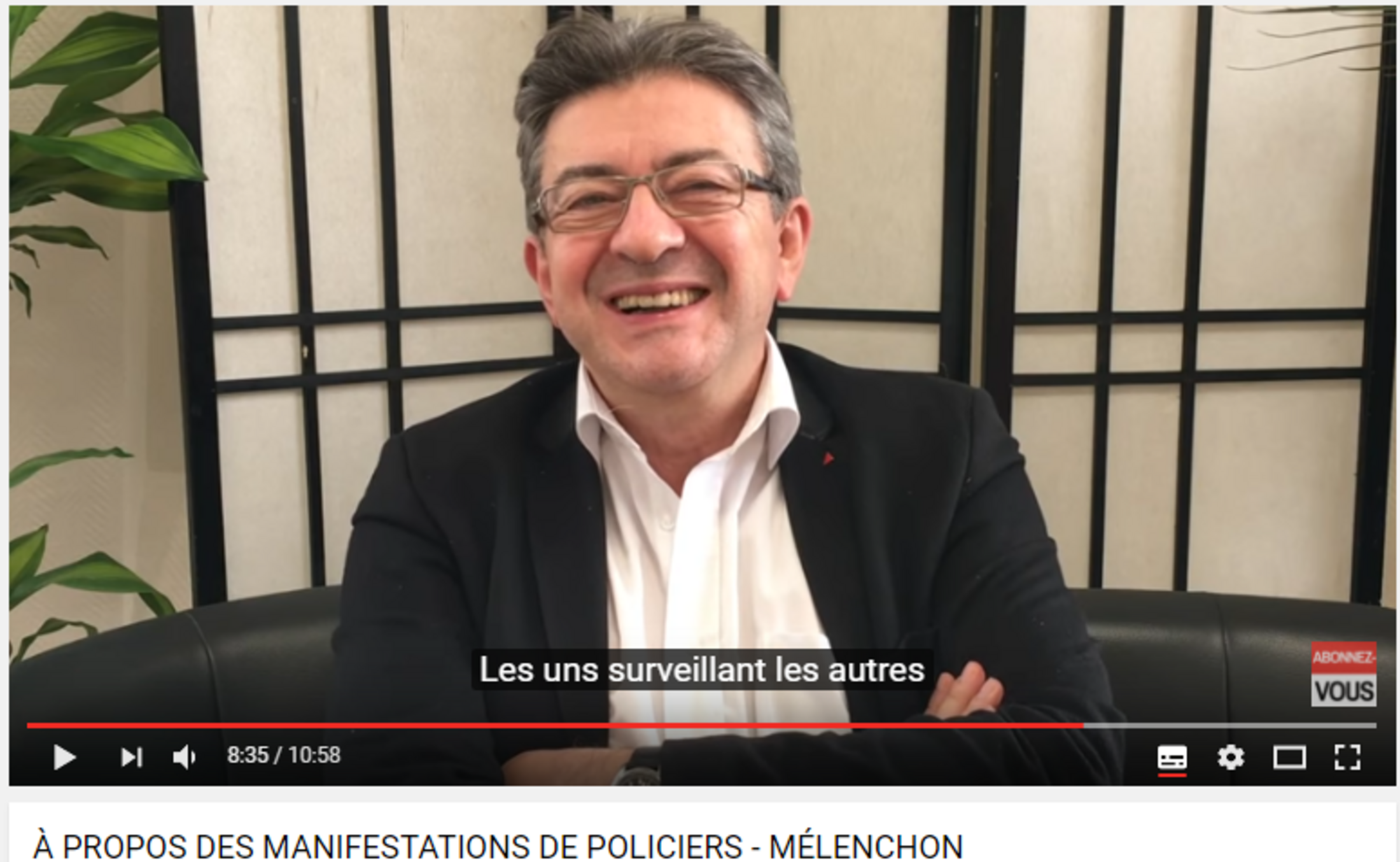L'une des récentes interventions du Grand Chef des Insoumis est consacrée aux manifestations policières.