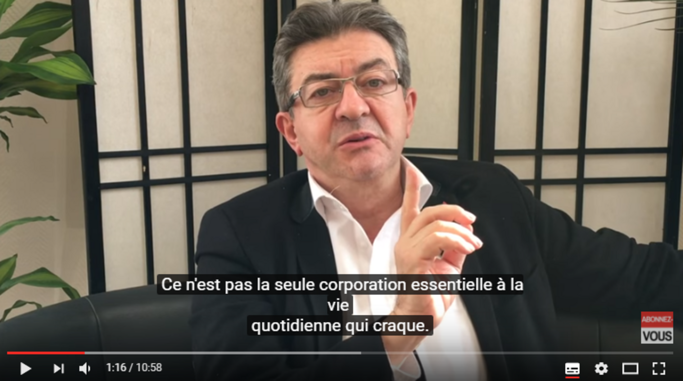 Pour le reste, toute la vidéo est consacrée à exprimer le soutien de Mélenchon aux manifestations policières.
