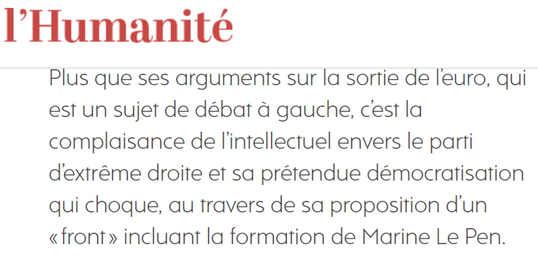 Ensuite, le théoricien d'un nécessaire (selon lui) rapprochement entre "souverainistes" de droite et de gauche: