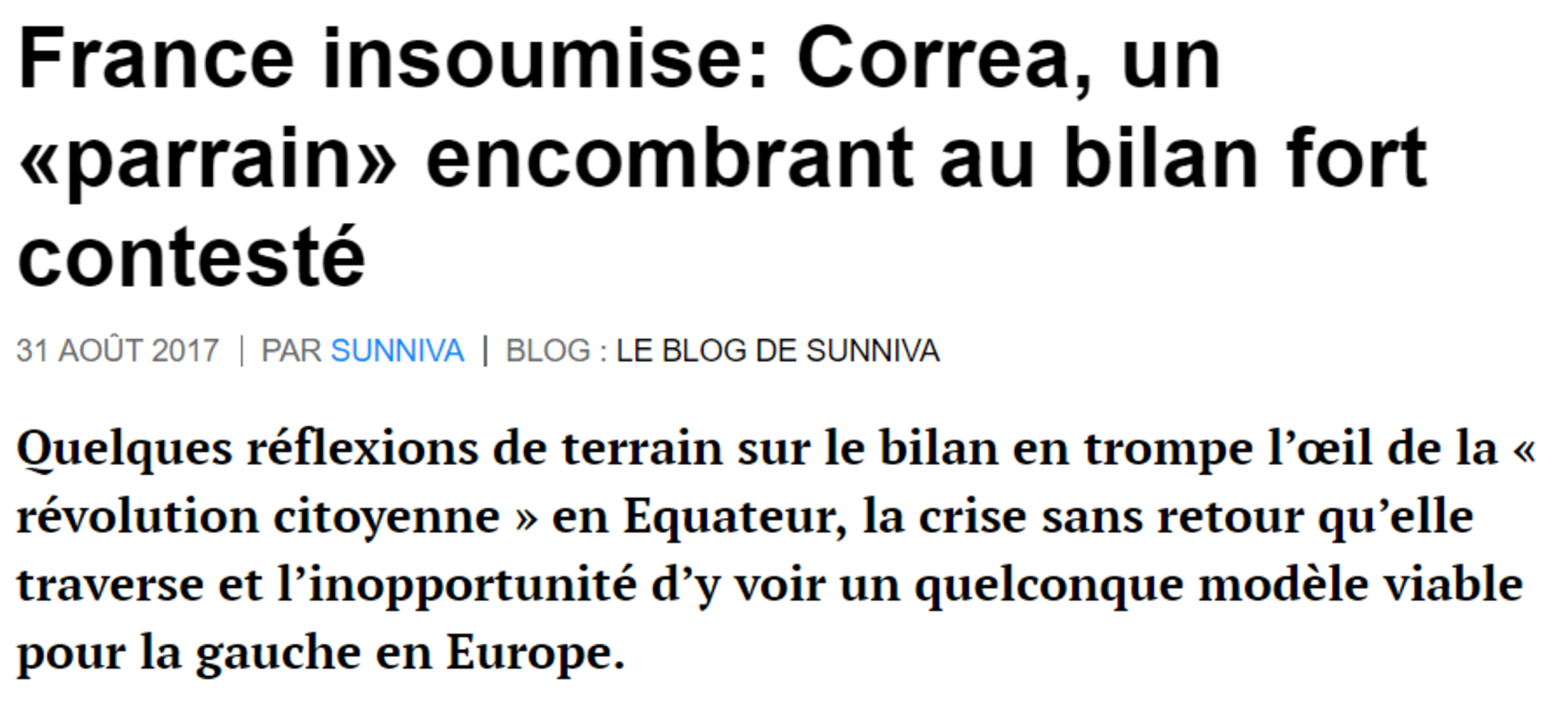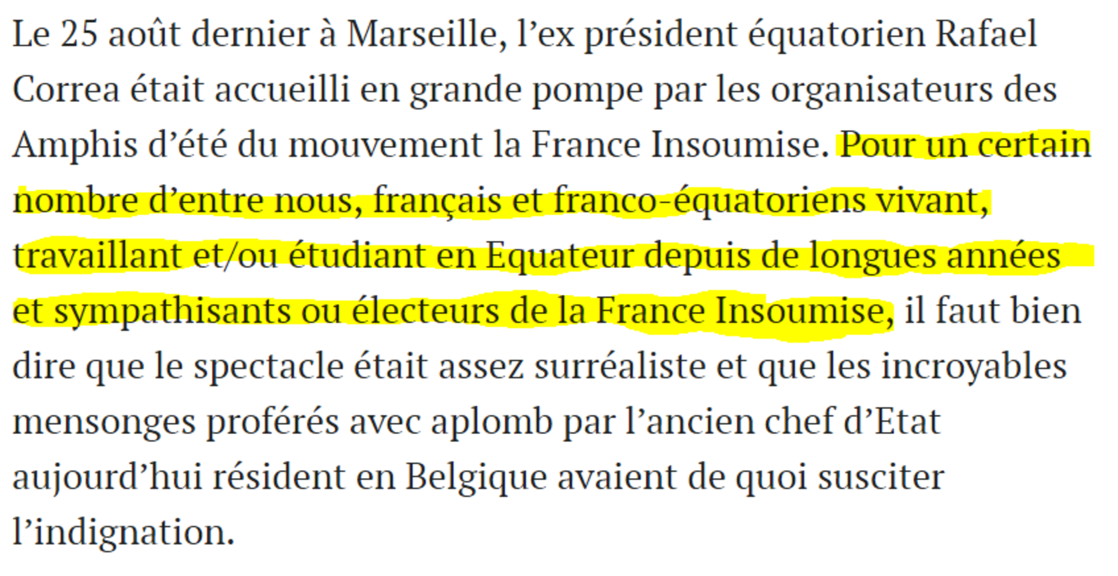 Heureusement, face à l'indignation internationale, Correa a fini par "gracier", tel un monarque exerçant son indulgence, ceux-là même qu'il avait fait condamner à des peines délirantes ( trois années d'emprisonnement et TRENTE TROIS MILLIONS D'EUROS de dommages et intérêts (!!!) pour crime de lèse-Majesté: