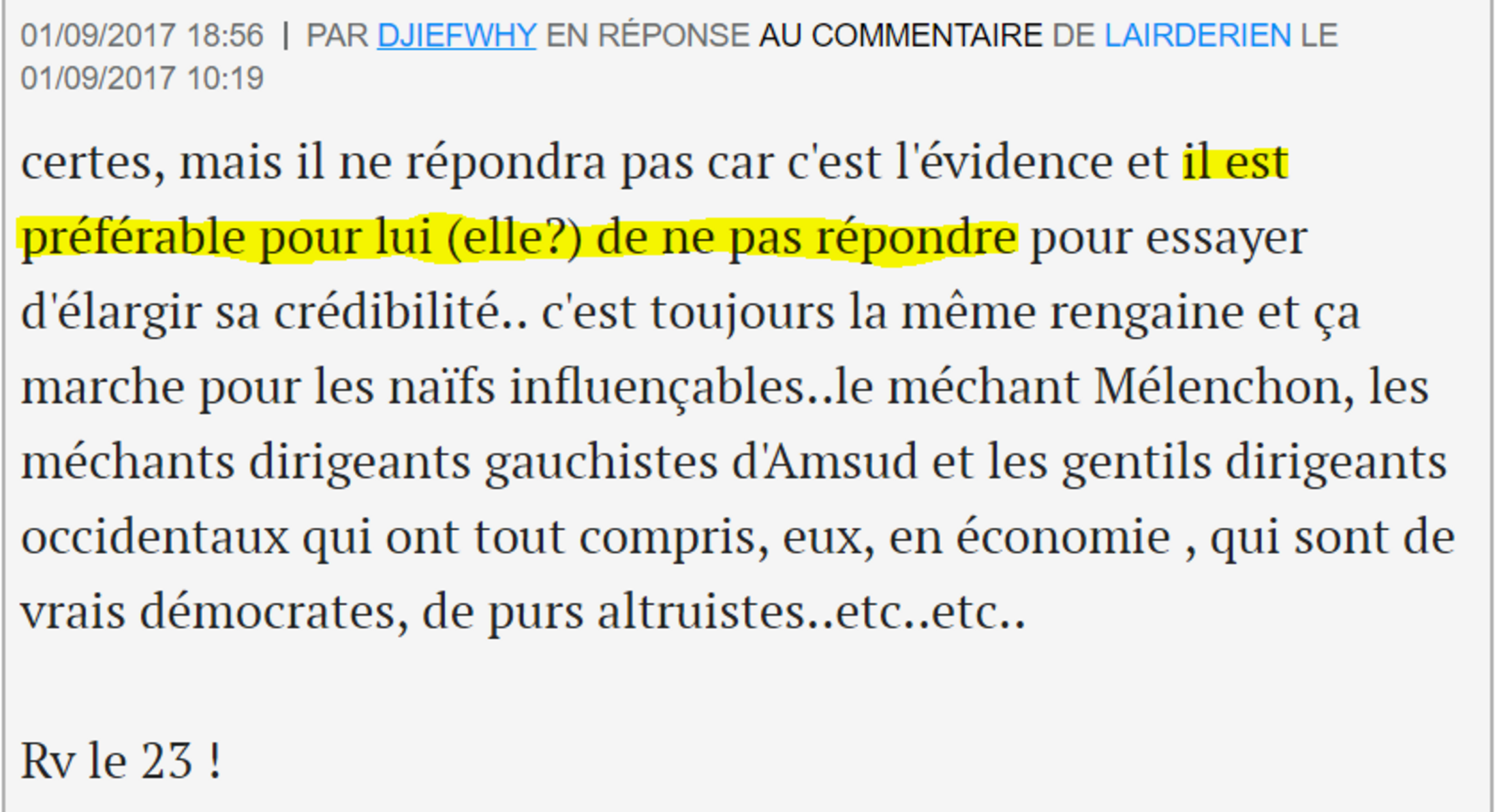 Il est à craindre que les commentateurs pro-Mélenchon qui s'expriment dans le Club, malheureusement, ne veuillent pas entendre cette critique.