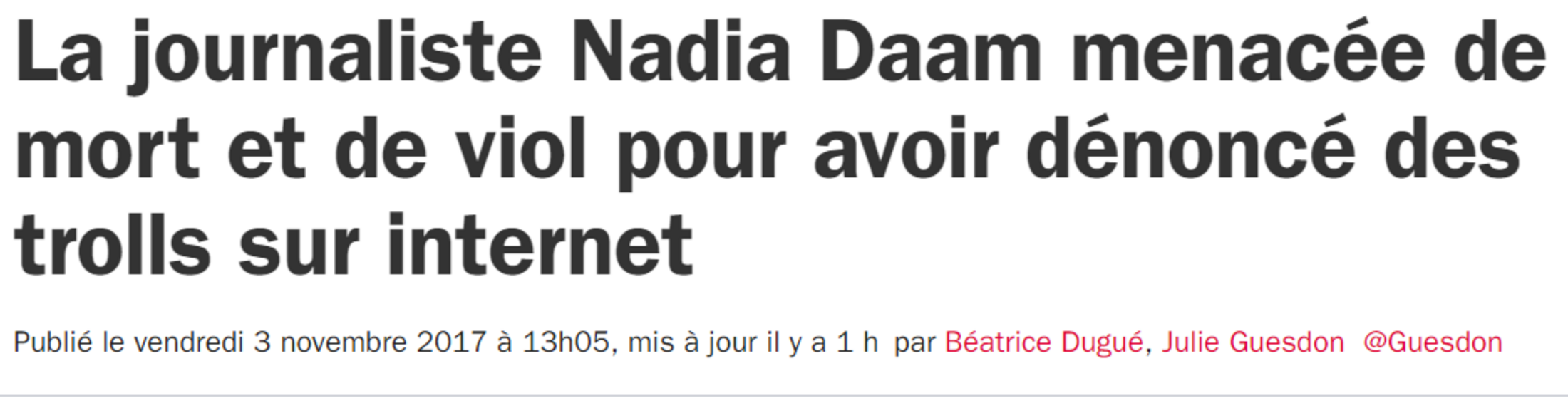 Avec le torrent d'injures et de menaces qui s'abat sur Nadia Daam, mon analyse se confirme...