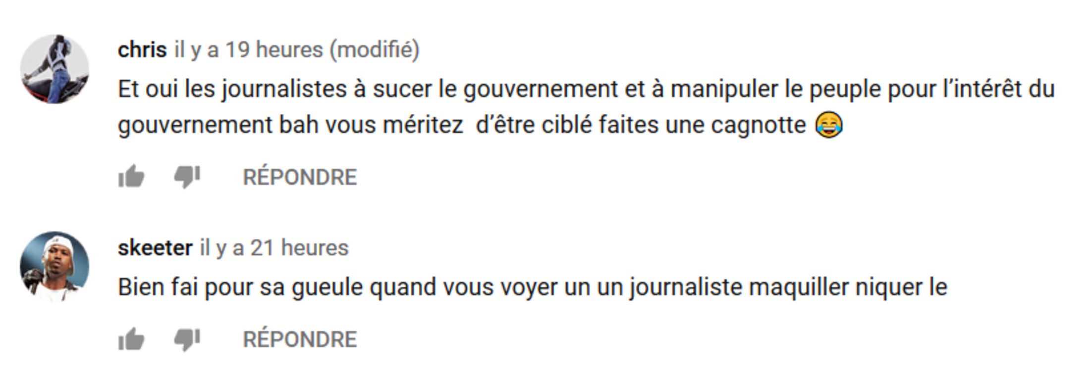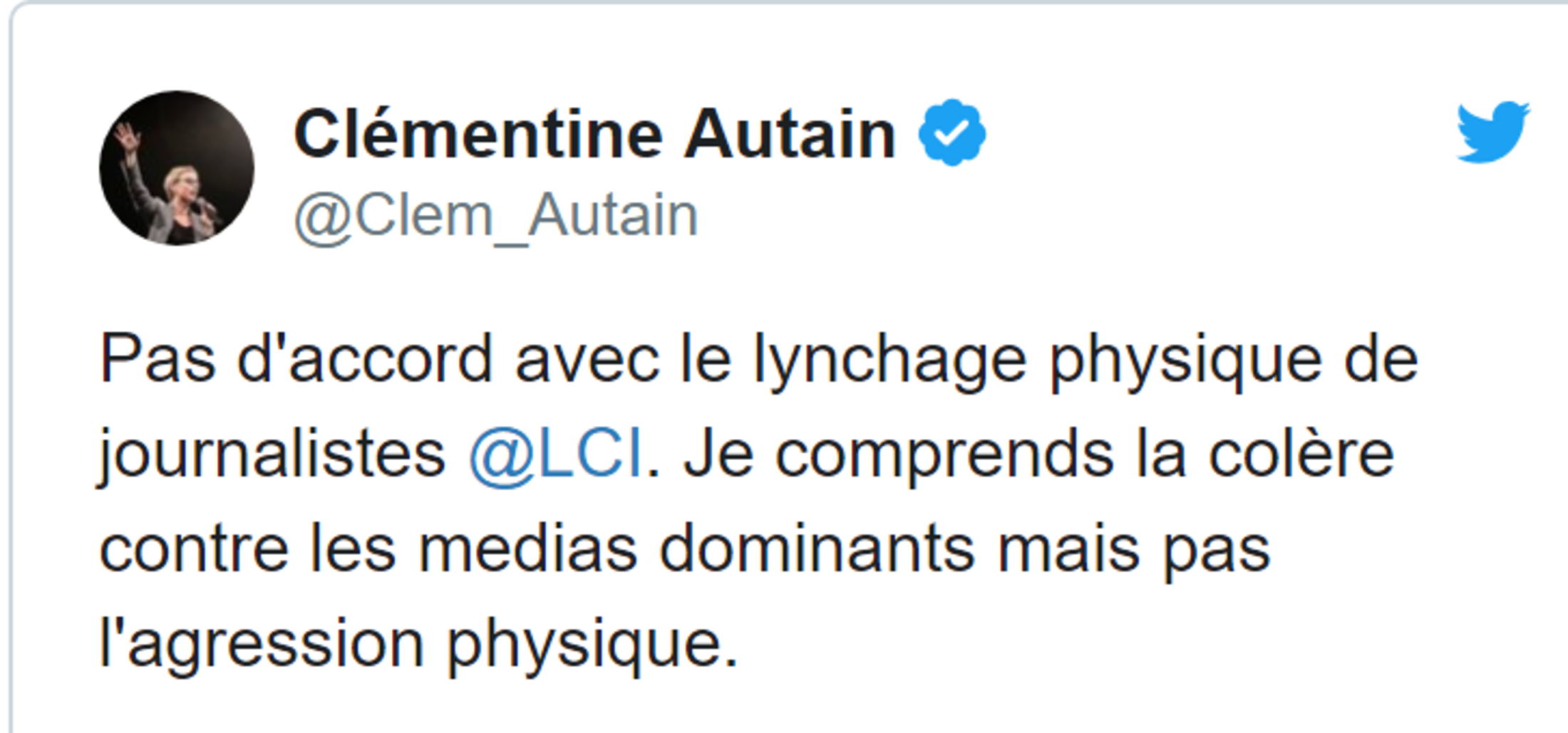 Silence complet, par contre, du chef de la FI, qui appelait, on s'en souvient, il n'y a pas si longtemps, à "pourrir" les journalistes, aimablement qualifiés de "menteurs", d' "abrutis", de "sales cons", de "vermine"...