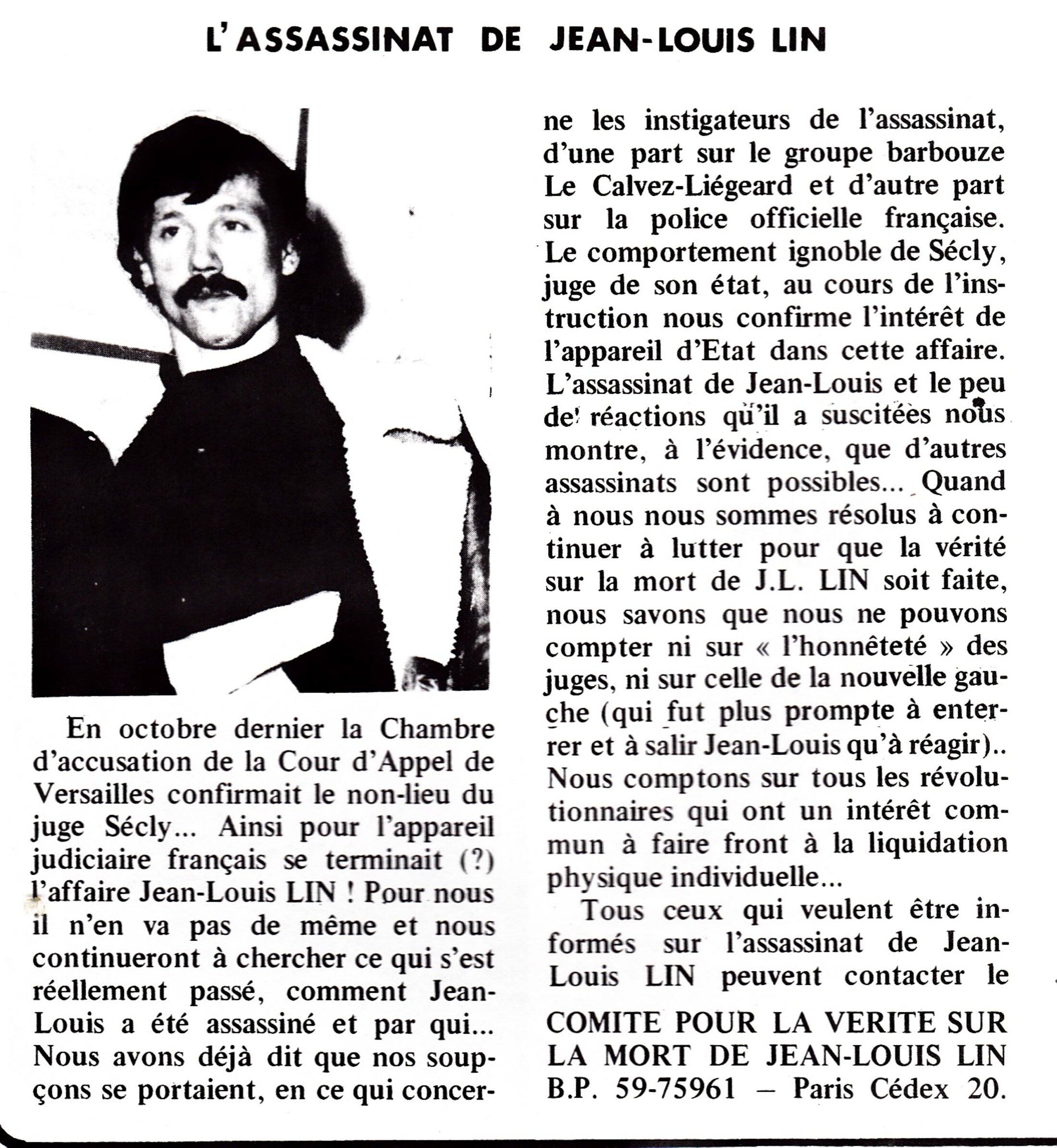 Ajoutons qu'on trouve encore trace de Jean-Louis Lin dans les archives du Nouvel observateur: