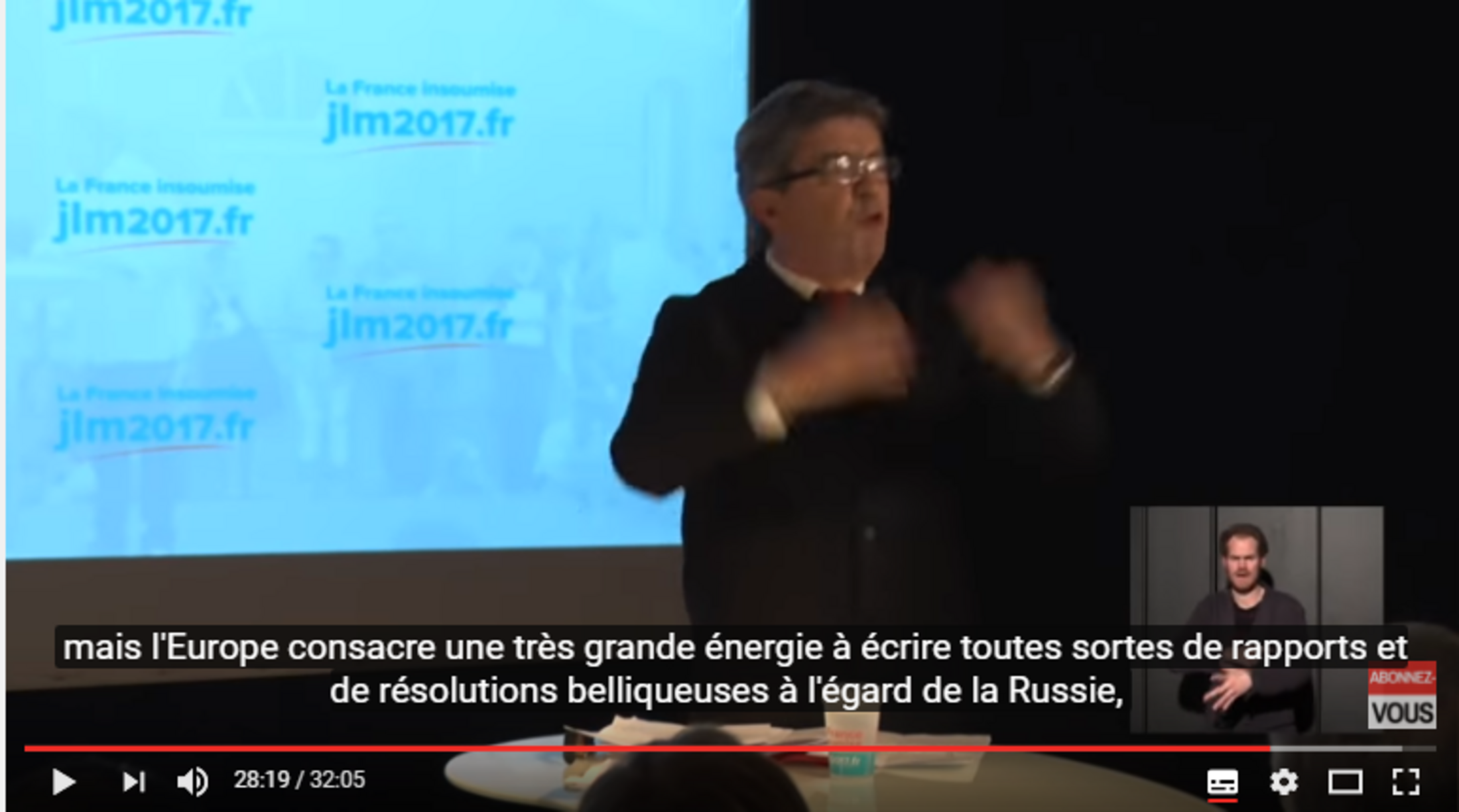 P comme Poutine : à ceux qui se demanderaient encore sérieusement si Mélenchon est, oui ou non, pro-Poutine, qu'il suffise de regarder, sur youtube, les voeux pour 2017 du candidat de la France Insoumise.
