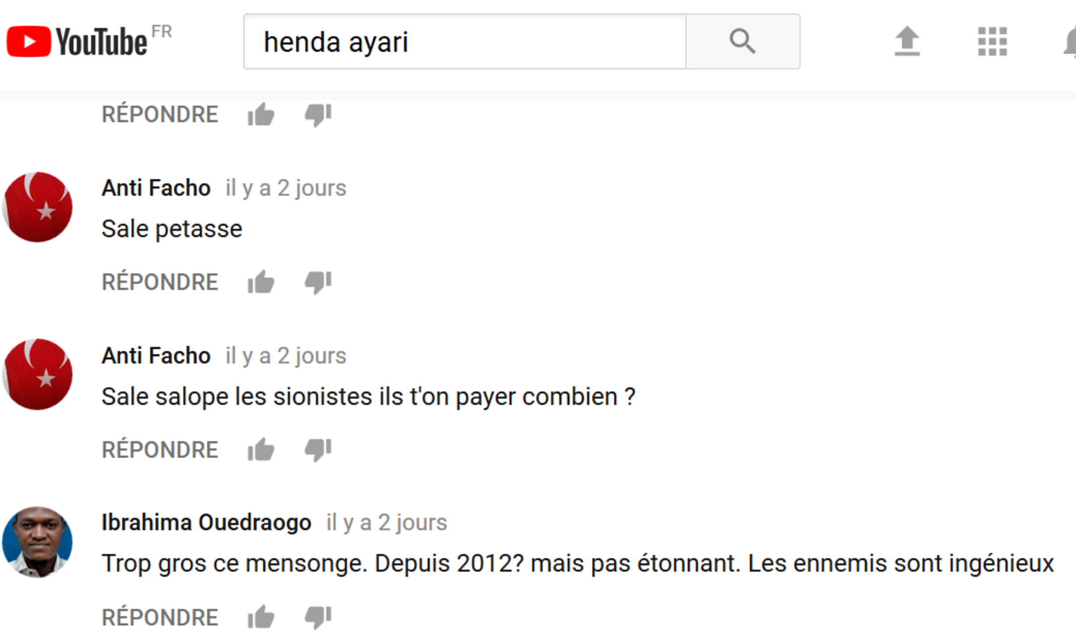 En dehors d'un vocabulaire fleuri (pute, salope, pétasse, etc), les accusations qui reviennent incessamment, de manière obsessionnelle, dans les commentaires postés par les partisans de Tariq Ramadan, incriminent, comme d'habitude, un "complot sioniste" dont Henda Ayari serait la marionnette.