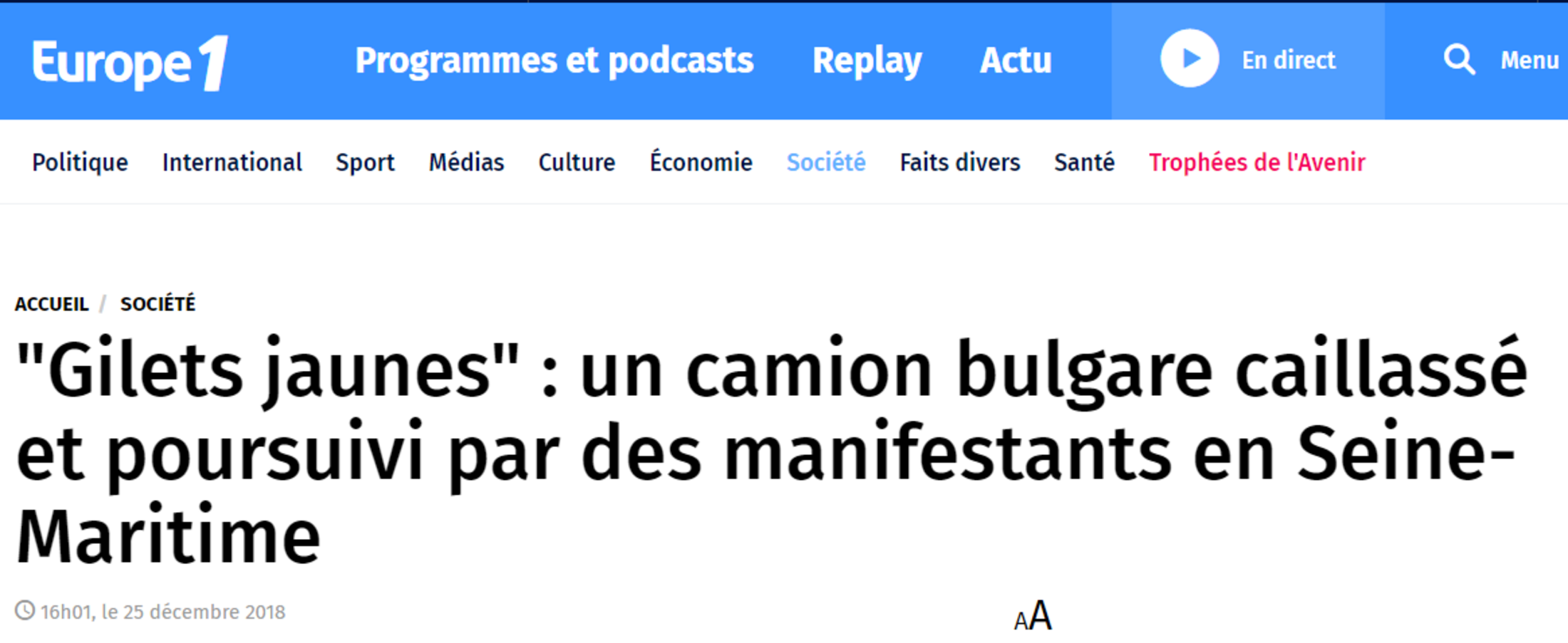 Bloqué avec ses confrères chauffeurs depuis dimanche soir, il explique "ne pas avoir bougé d'un mètre". Et raconte que des "gilets jaunes" ont interdit aux routiers de se rendre dans les magasins voisins, parce que «ça fait de l’argent qui rentre dans les caisses de l’Etat».