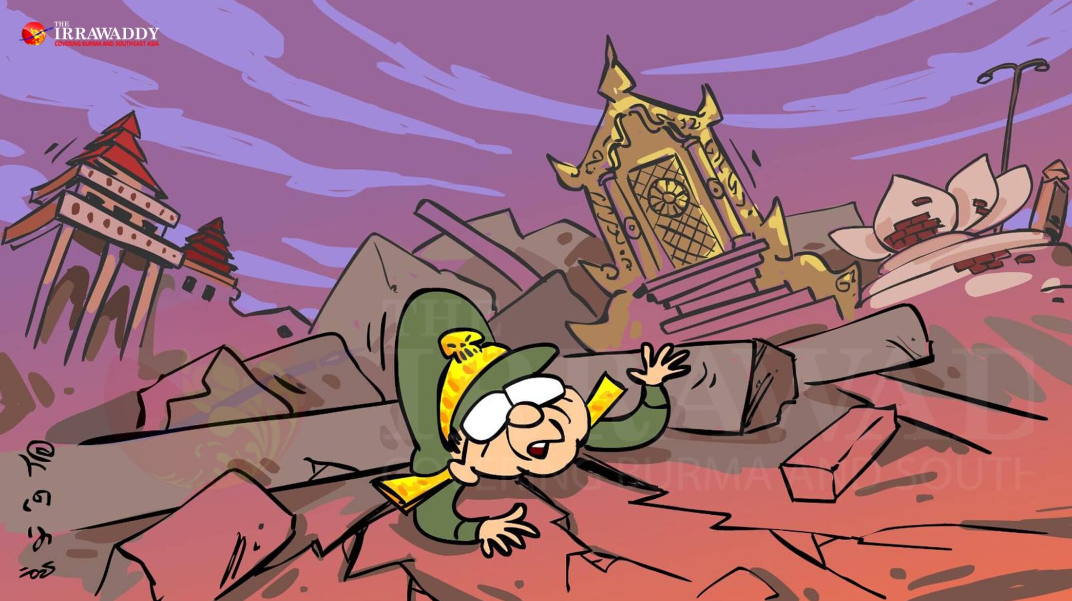 Publié depuis l'étranger par le journal d'opposition : The Irrawaddy. Le dessin est visible directement sur leur site ici