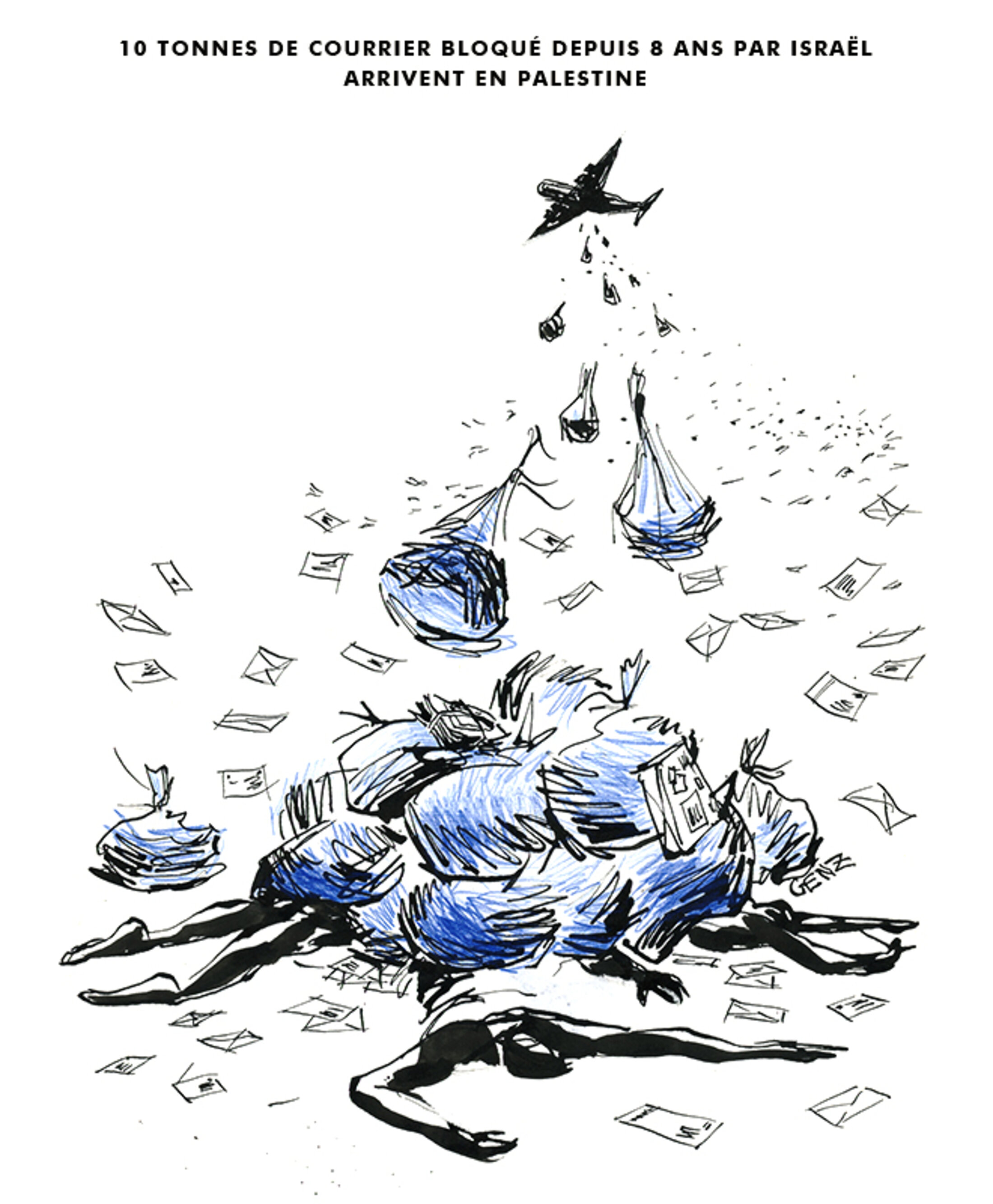 10 tonnes de courrier bloqué depuis 8 ans par Israël arrivent en Palestine.