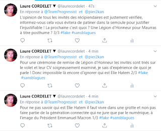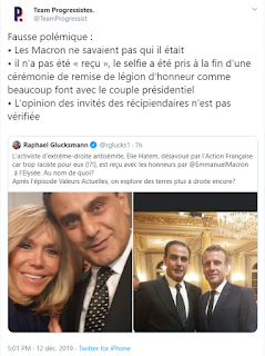 Elie Hatem est un avocat franco-libanais (il a notamment défendu le mercenaire Bob Denard) qui a été membre du comité directeur de l’Action française pendant plusieurs années. C'est un ardent défenseur des théories antisémites de Charles Maurras (1868-1952) et un admirateur de Pétain. C'est également un ami de Jean-Marie Le Pen, un proche de toute la nébuleuse familiale et de la plupart des figures historiques du Rassemblement National. Il a participé à plusieurs rassemblements organisés par les catholiques intégristes de Civitas, et il a des liens avérés avec Alain Soral, Hervé Ryssen, Yvan Benedetti et Jérôme Bourbon, tous quatre connus (et parfois condamnés) pour leurs propos négationnistes (voir notes). Elie Hatem fréquente donc assidûment la lie identitaire, et il ne rechigne pas à exposer et défendre les théories maurrassiennes lors de conférences organisées par ses amis de la fachosphère. Il suffit de taper le nom de ce personnage sulfureux sur un moteur de recherche pour avoir accès à son curriculum vitae. Facile me direz-vous ? Eh bien non ! Pour la Team Progressistes qui prétend sur son compte Twitter "soutenir l'action de ceux qui croient en la démocratie, aux libertés, en France et en Europe, contre les xénophobes et europhobes" en gros l'Elysée ne savait pas qui était Elie Hatem. Sans blagues ! Je vous laisse savourer leur argumentaire bidon digne de la maternelle...