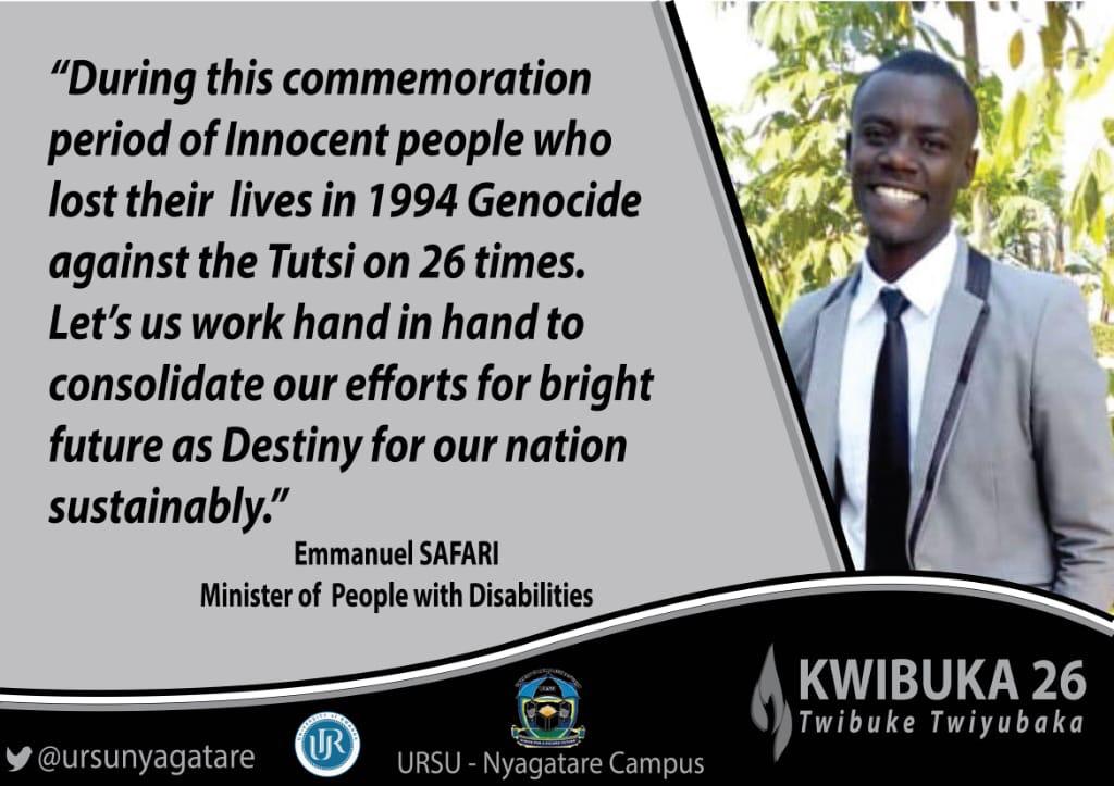 *"During this commemoration period of Innocent people who lost their lives In 1994 Genocide against the Tutsi on 26 times. Let's us work hand in hand to consolidate our efforts for bright future as Destiny for our nation sustainably. SAFARI Emmanuel