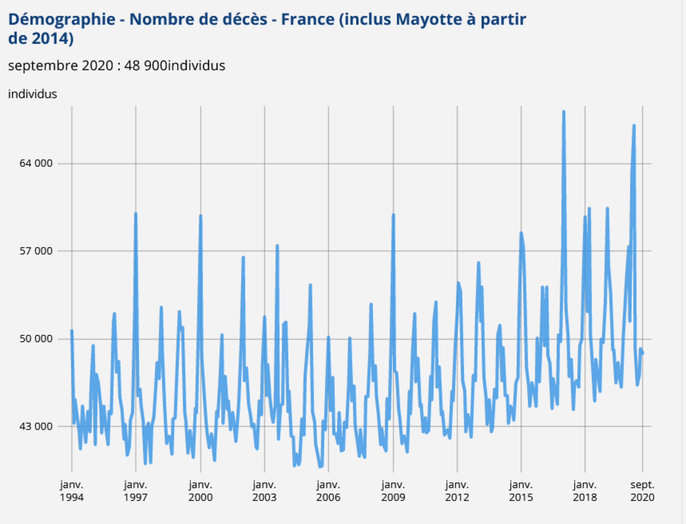 Figure 3 : Évolution de la mortalité globale de janvier 1994 à septembre 2020