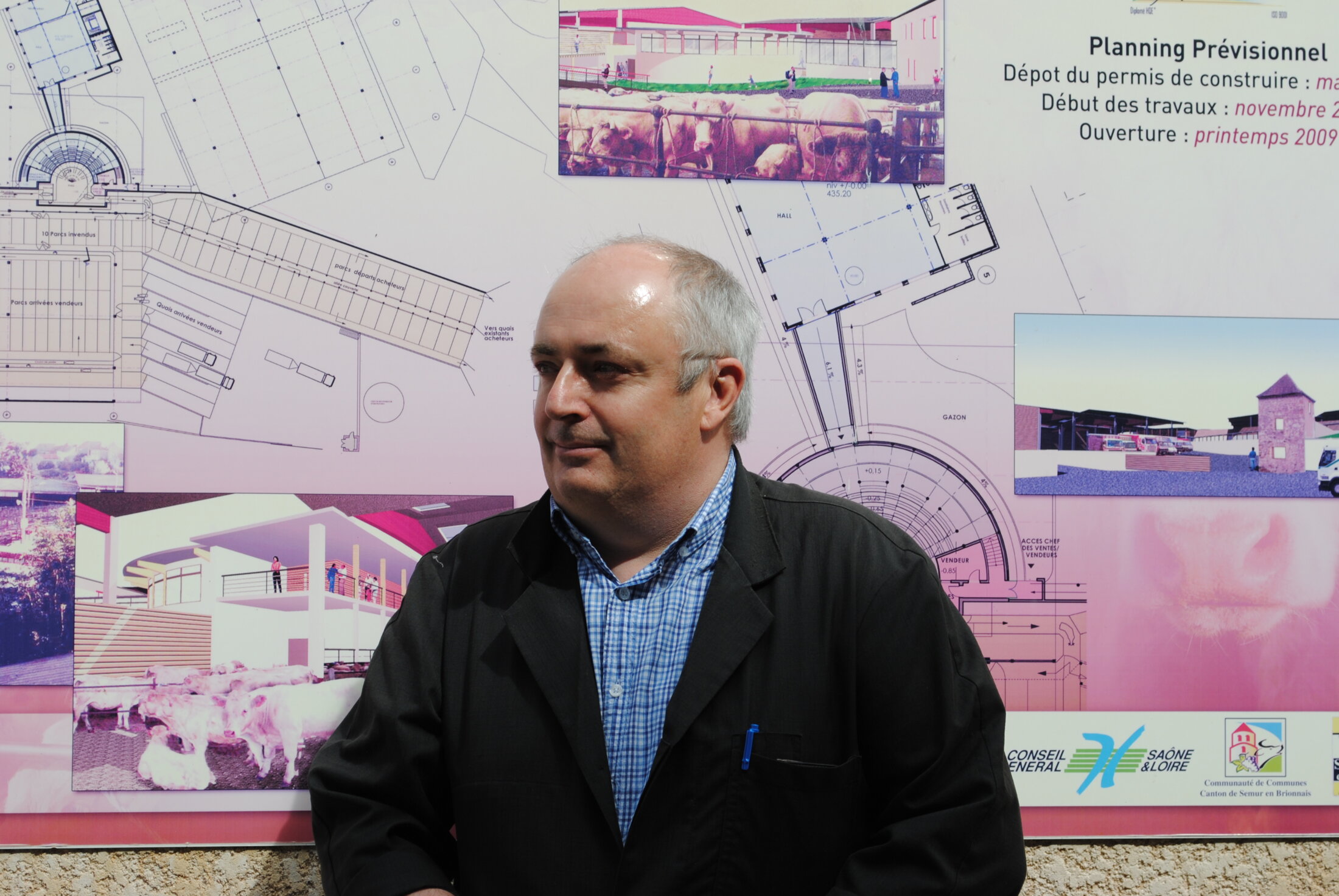 Enfermé dans une petite cage de verre, installée sur le coté gauche du ring, Jérémy Sauvant est le crieur du marché. Il débite à la vitesse de l'éclair les informations essentielles des bêtes qui défilent sous ses yeux : poids, âge, prix provenance. En moins de 30 secondes l'affaire est pliée, les animaux vendus sont poussés vers la sortie.