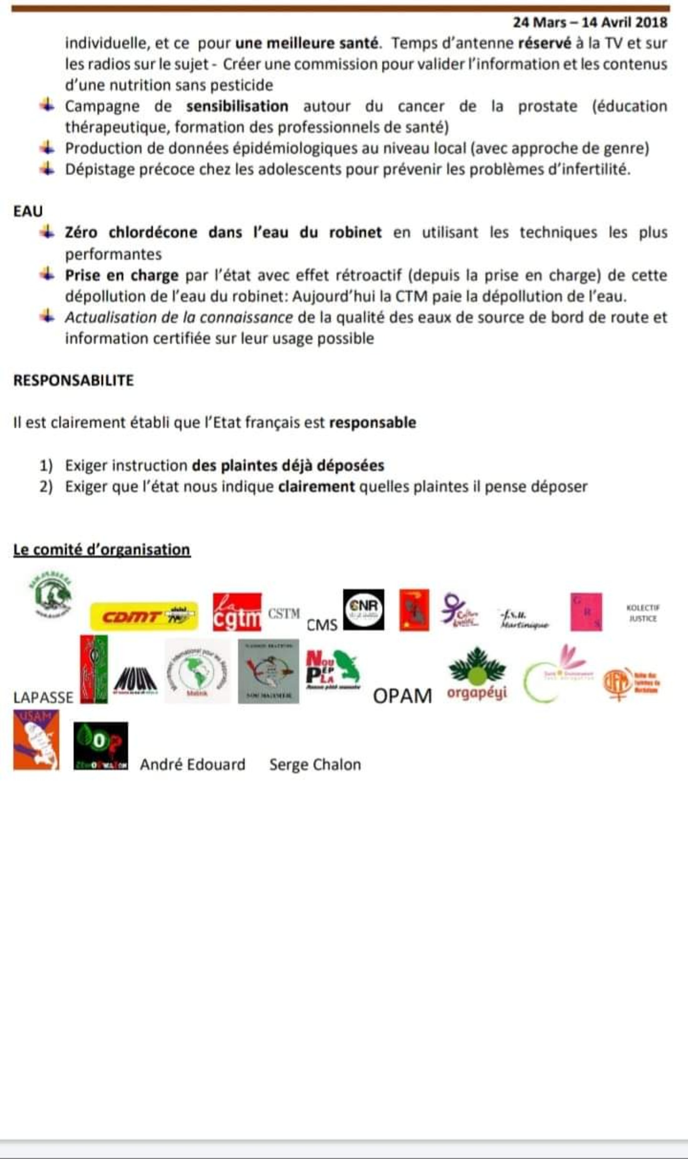 La lutte institutionnelle pour la justice semble dans l’impasse. Pour le moment, il n’est question d’aucune mise en cause des utilisateurs du chlordécone. Même la récente action collective de juillet 2019, demande des réparations auprès de l'Etat.3