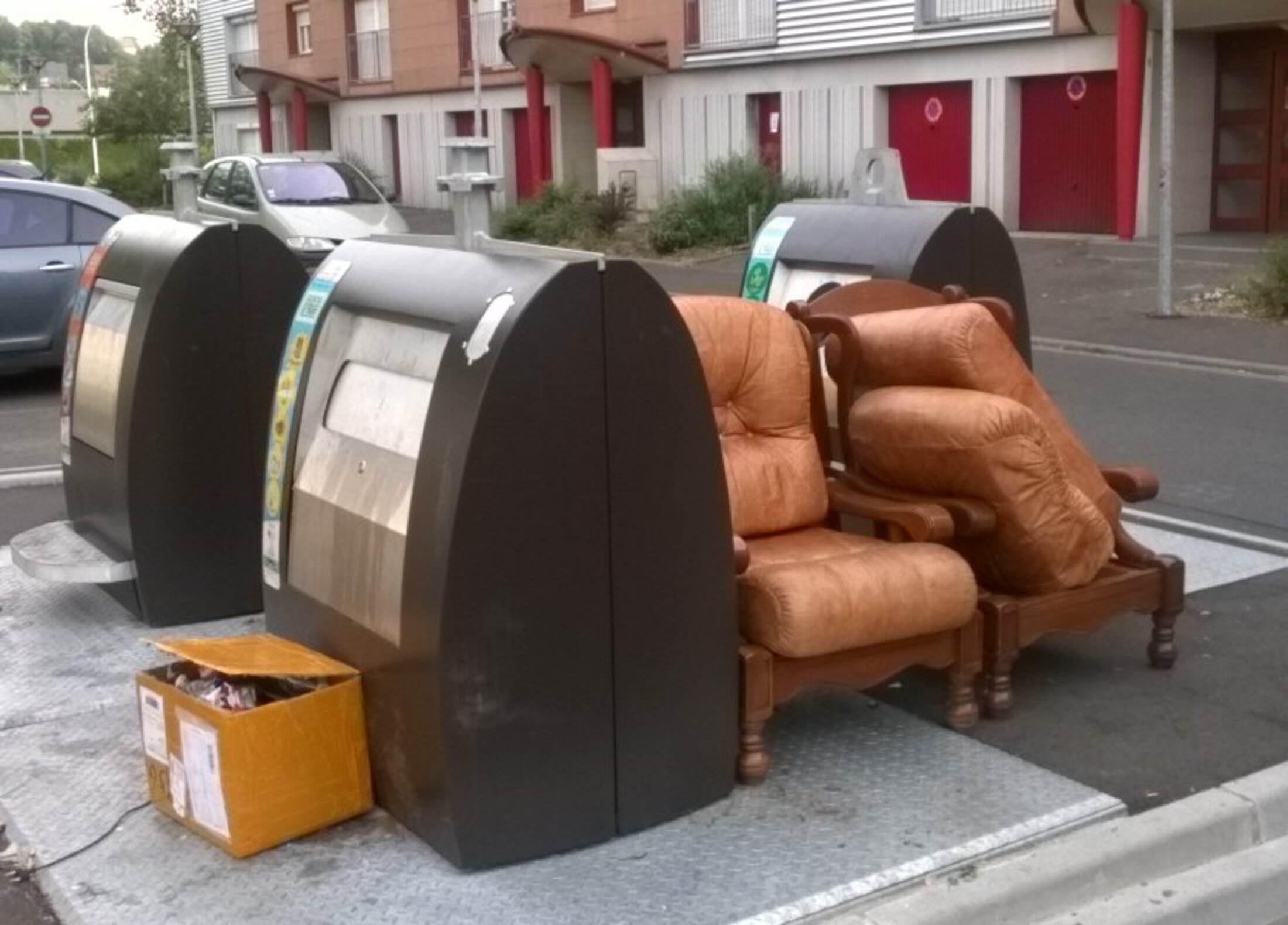 Serait-ce une réaction à l'impossibilité d'y faufiler certain objets qui auparavant rentraient facilement dans les bennes ? Ou bien alors une proposition civile d'amélioration de la convivialité des lieux ?