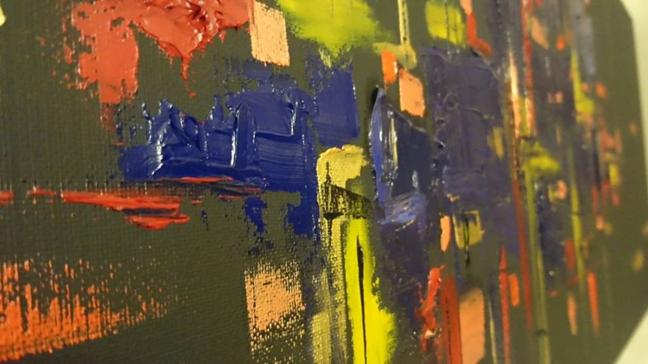 La création donne frisson et donne vie… Il y a de la vie et du cosmique dans cette toile qui prend vie et qu’un collectionneur trouvera pour lui… Somewhere over the rainbows retentit dans le hasard musical… on est dans l’instant, la sensibilité pure, l’émotion sensuelle de l’acte créatif, acte de conscience et d’amour…
