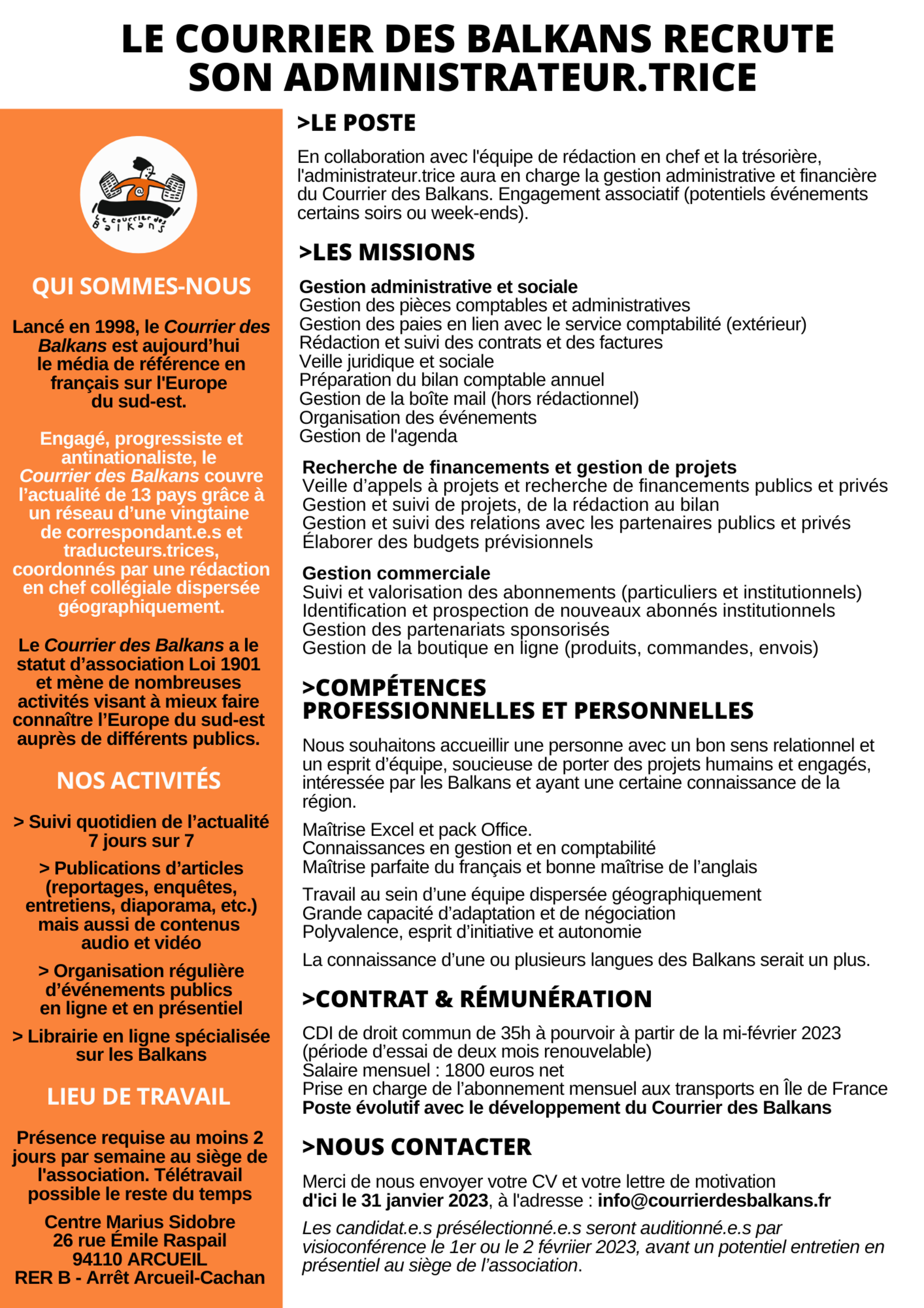 Le Courrier des Balkans recrute son administrateur.trice. Poste à pourvoir en février !