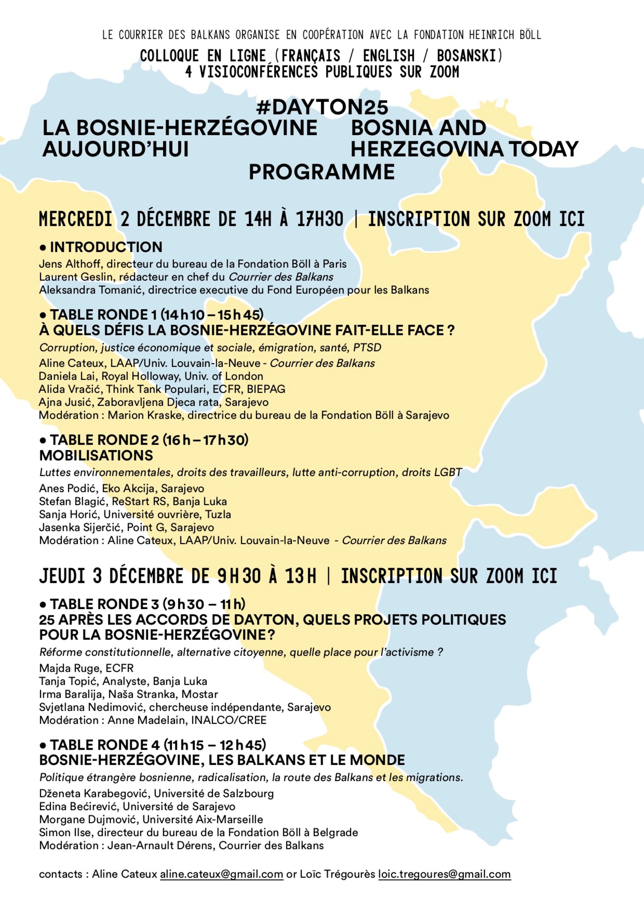 - 25 ans après les accords de Dayton, quels projets politiques pour la Bosnie-Herzégovine ? (réforme constitutionnelle, alternative citoyenne, quelle place pour l’activisme ?)